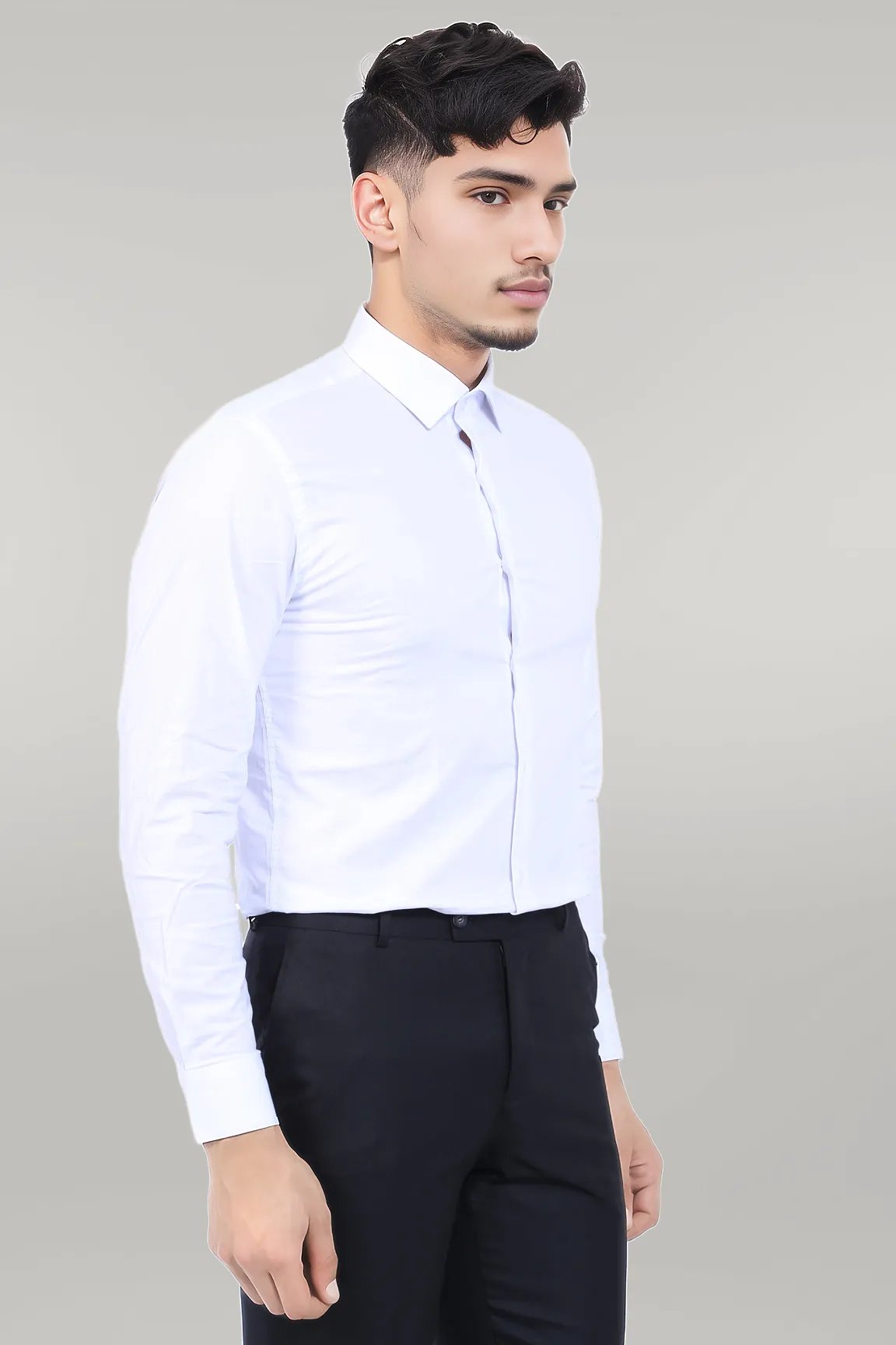 Cotton Satin Plain Slim Fit White...