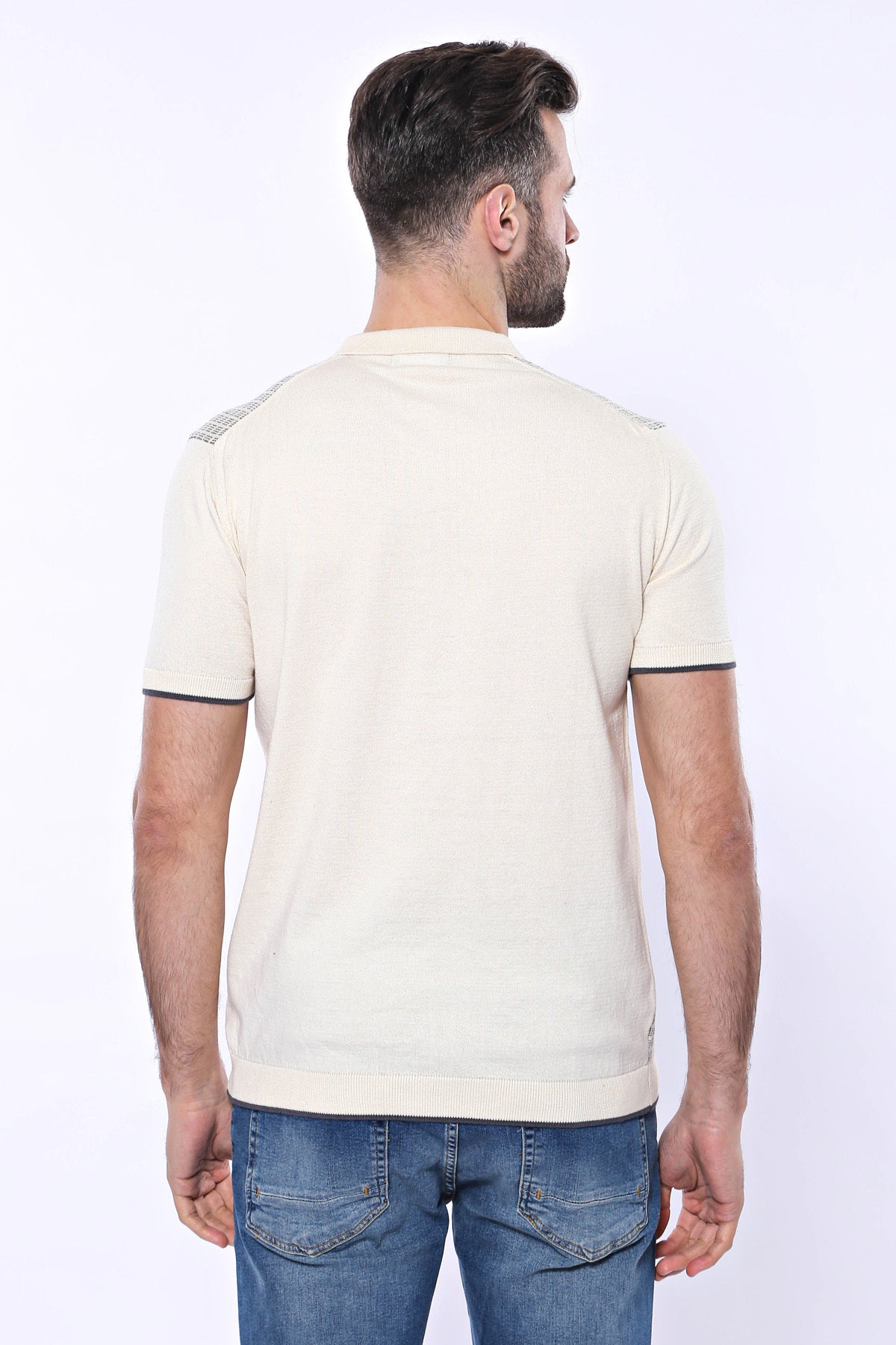 Cream Plaid Zippered Polo Knitted T-Shirt