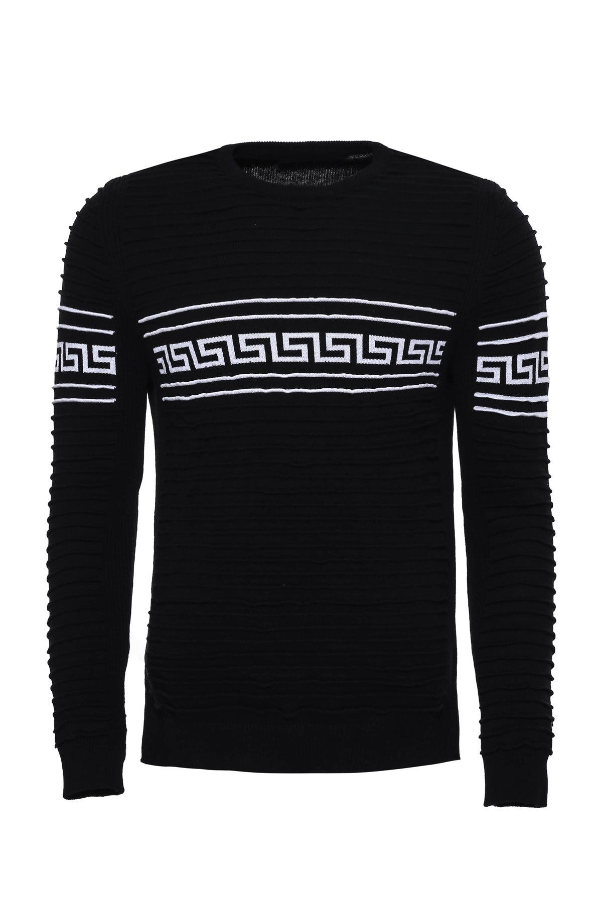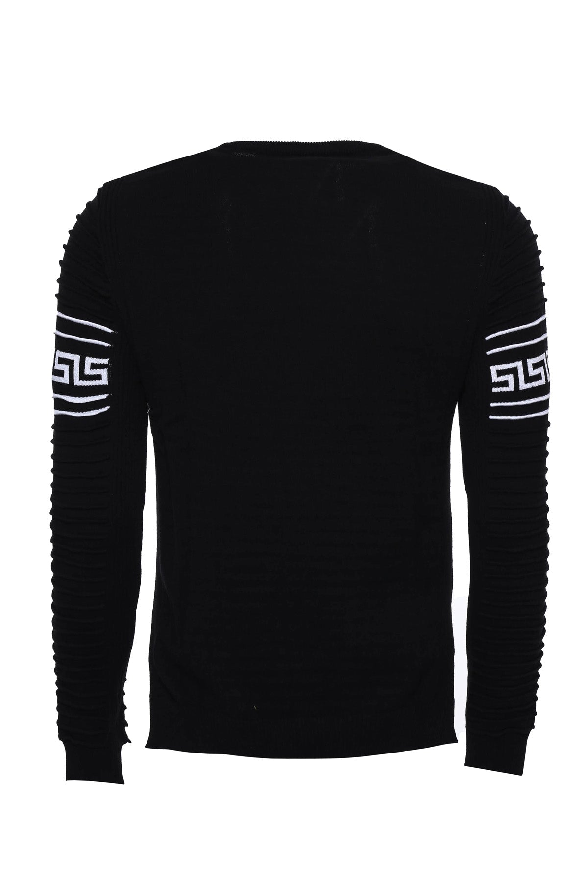 This black crew neck knitwear from Wessi is expertly crafted with a stylish chest pattern, providing a sleek and modern look. Made with high-quality materials, this knitwear offers both comfort and durability, making it a perfect addition to any wardrobe. Upgrade your style with Wessi's knitwear.