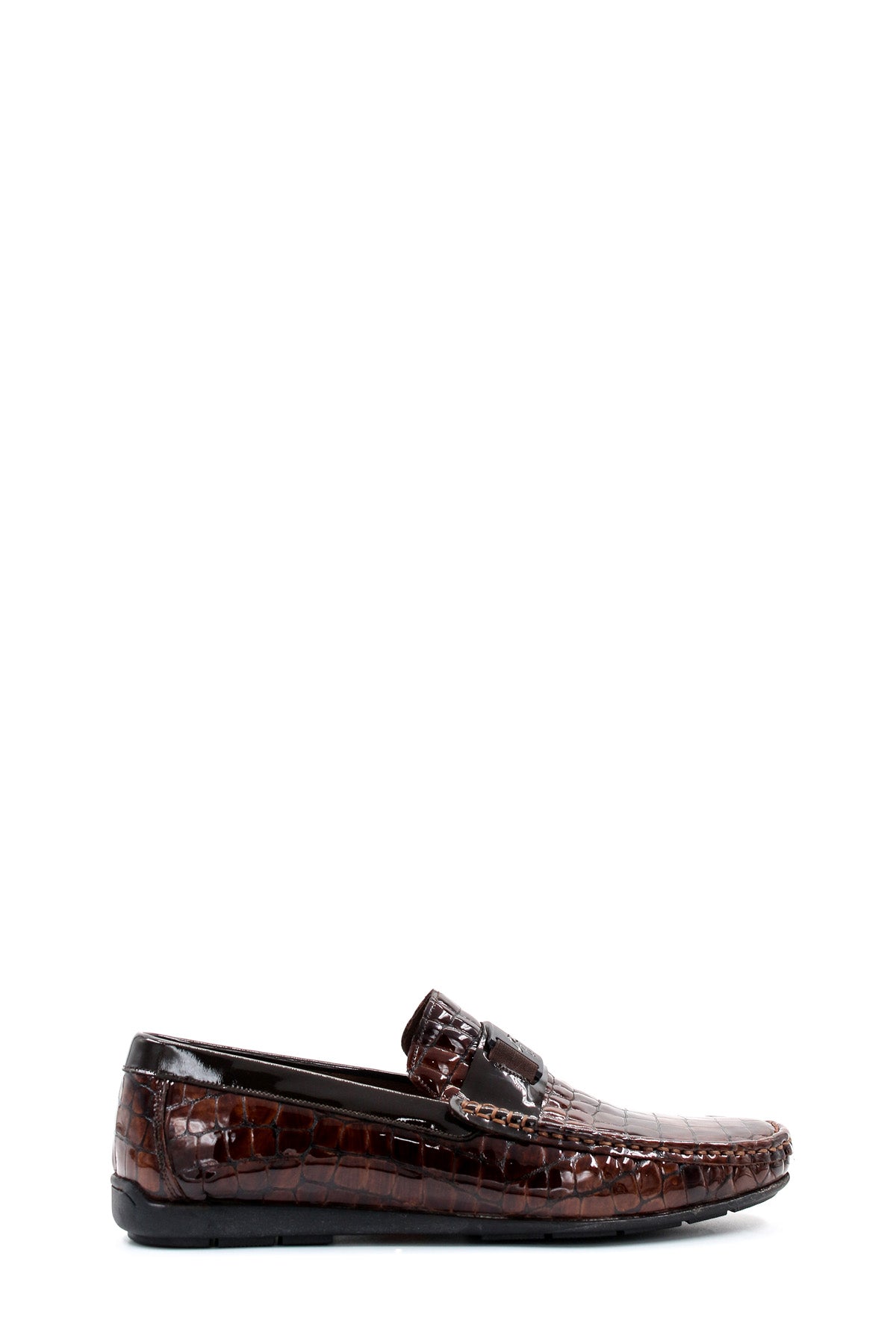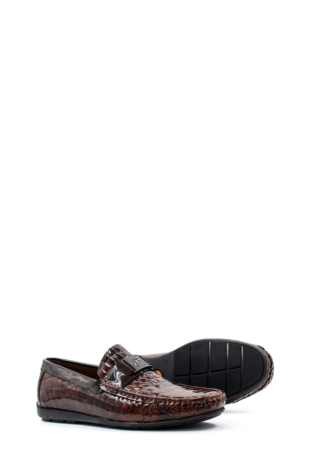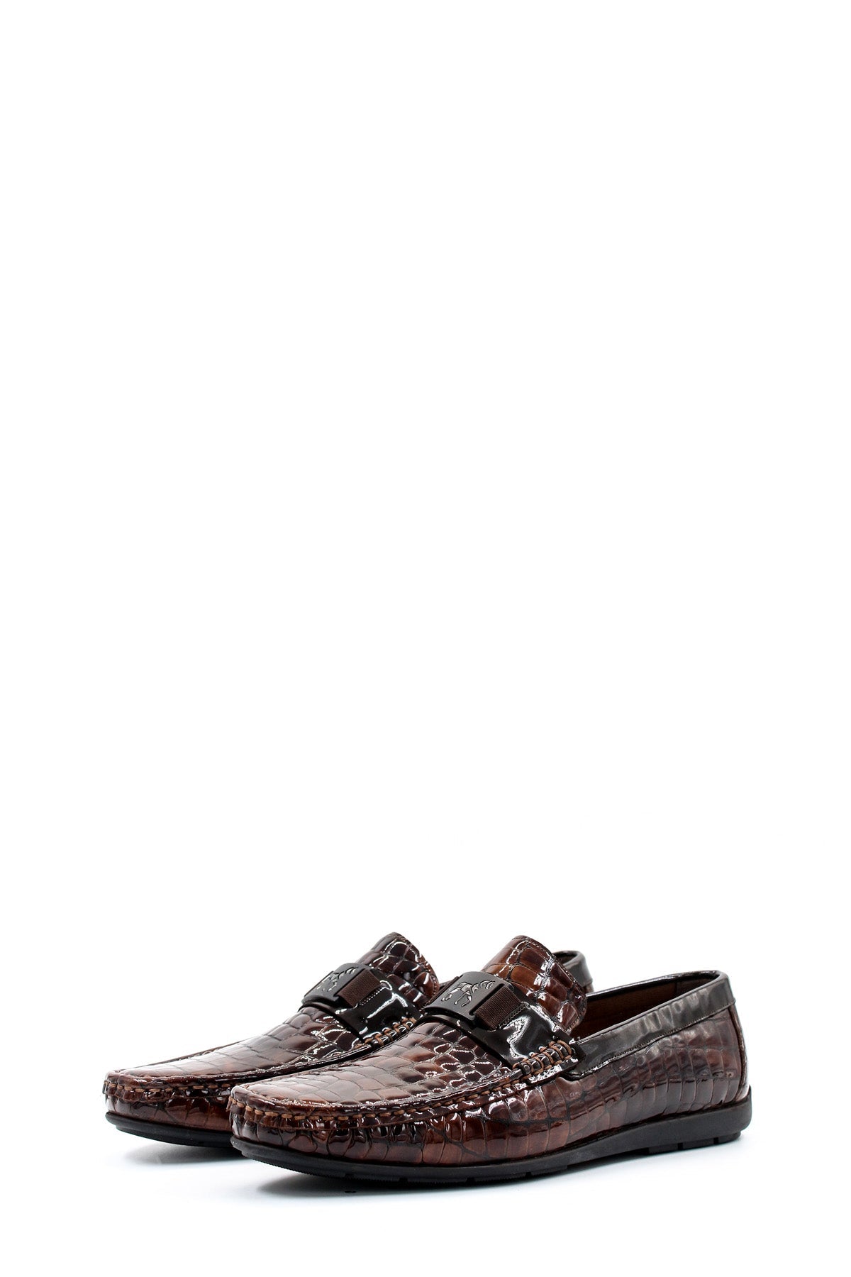 Crocodile Embossed Brown Leather Moccasins-Wessi