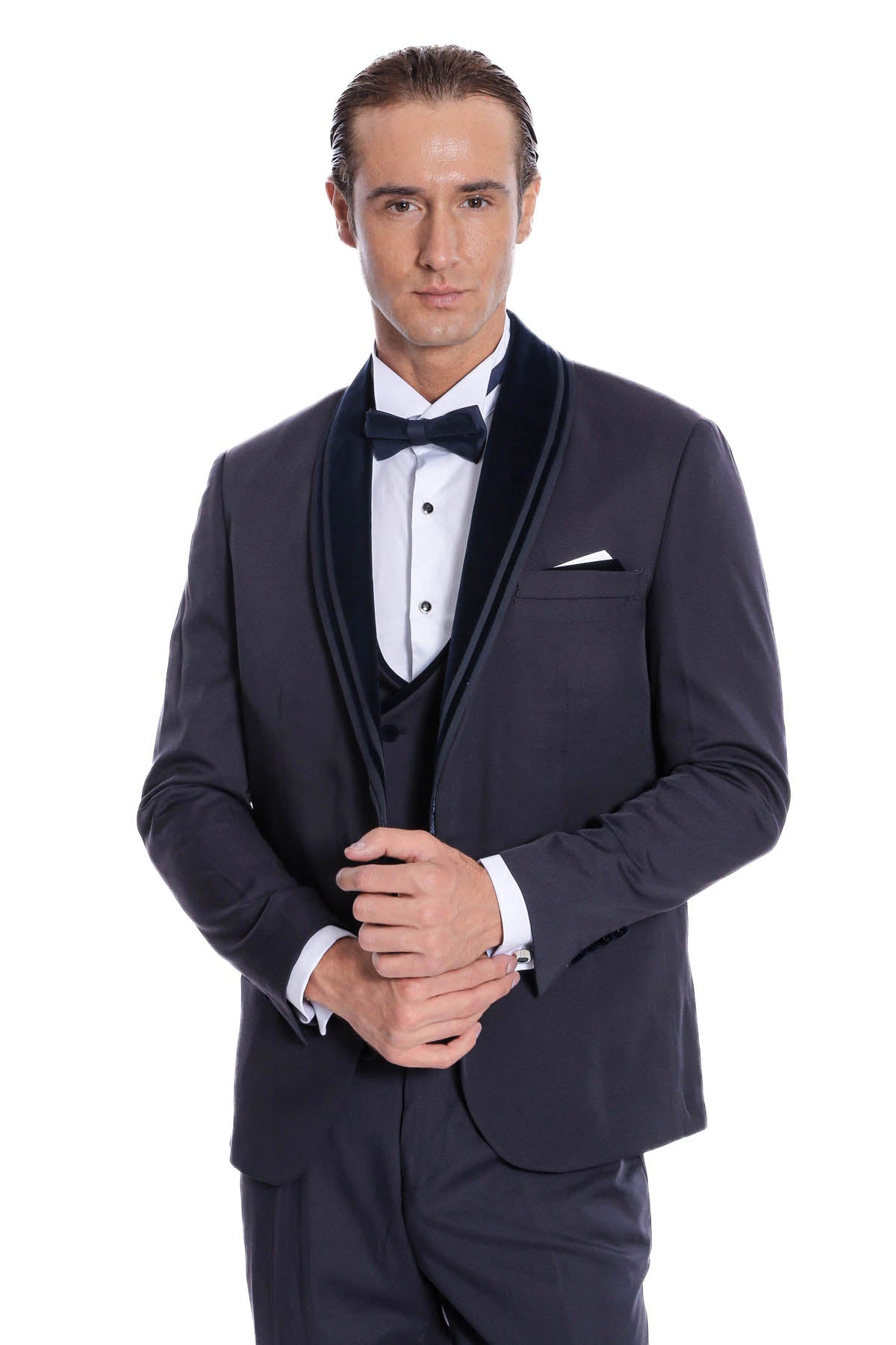Detachable Velvet Lapel Navy Blue Tuxedo
