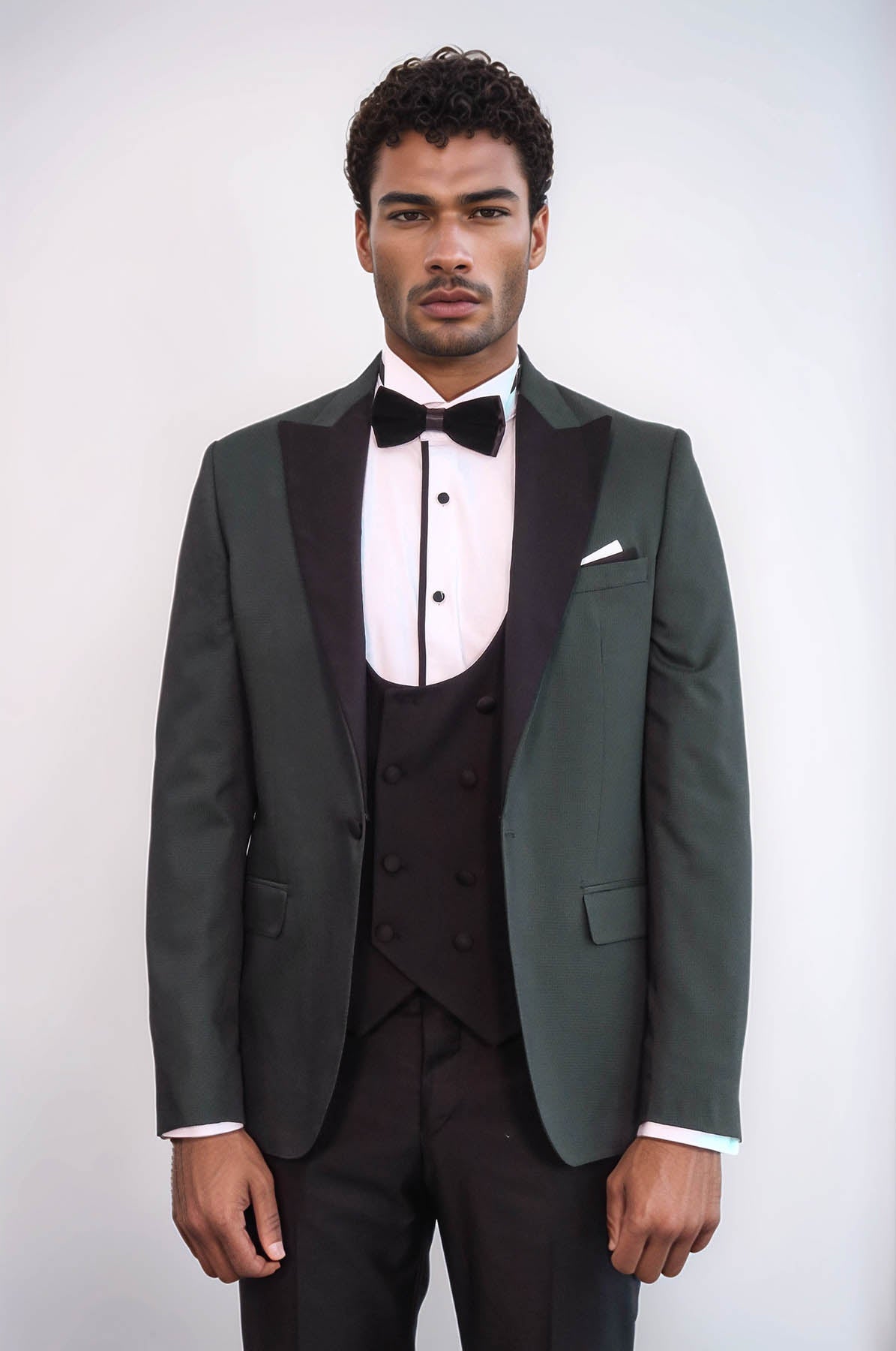 Dot Patterned Dark Green Men Tuxedo