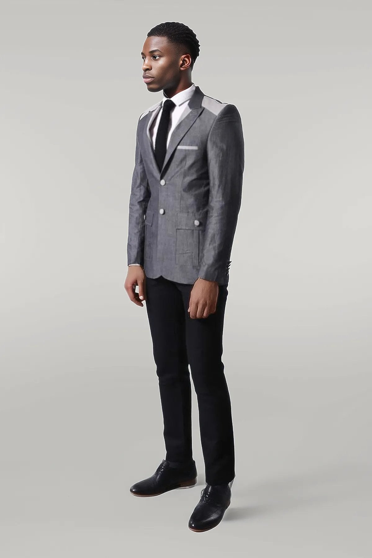 Double Button Bag Pocket Pointed Collar Grey Jacket-Wessi