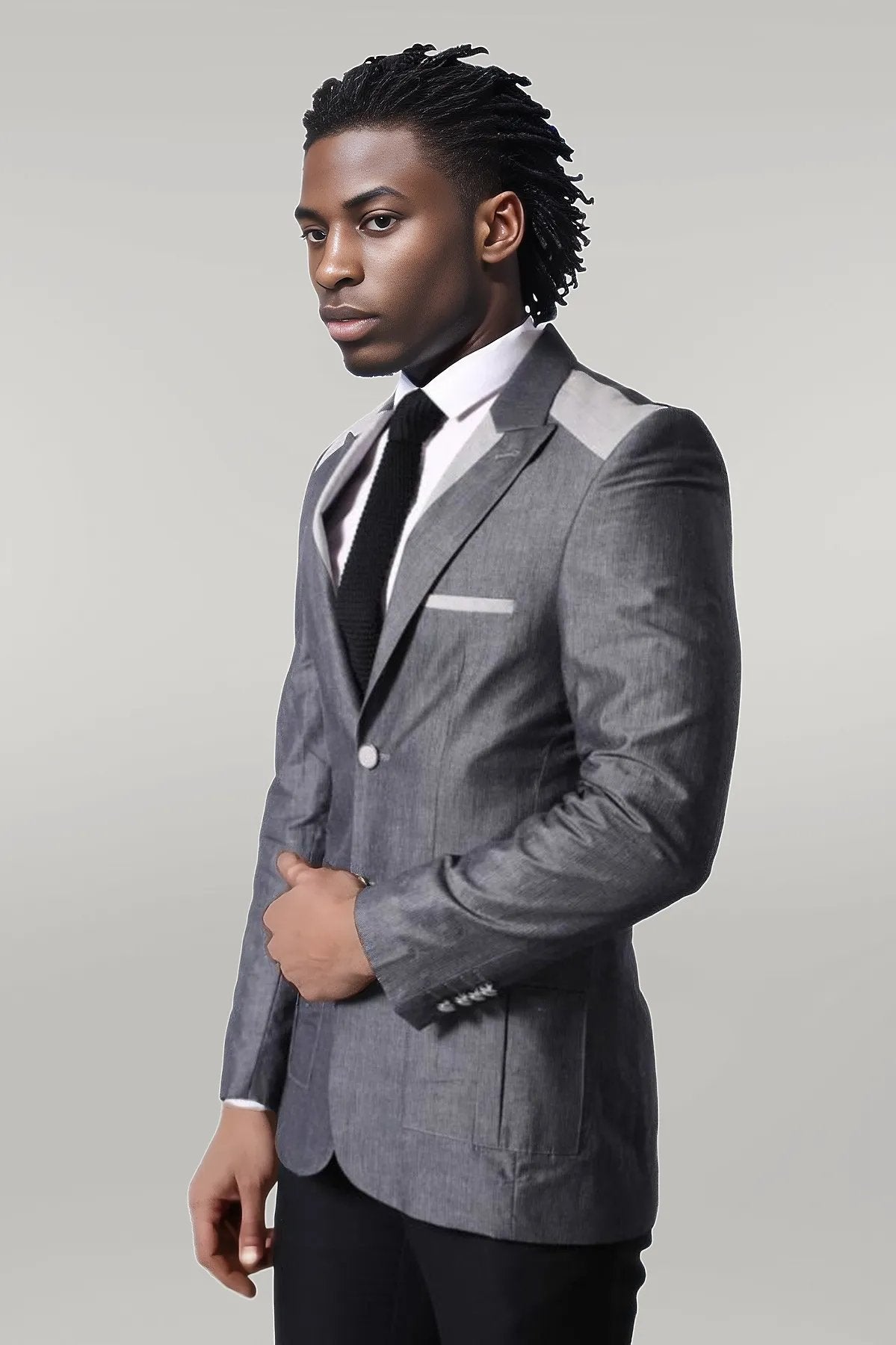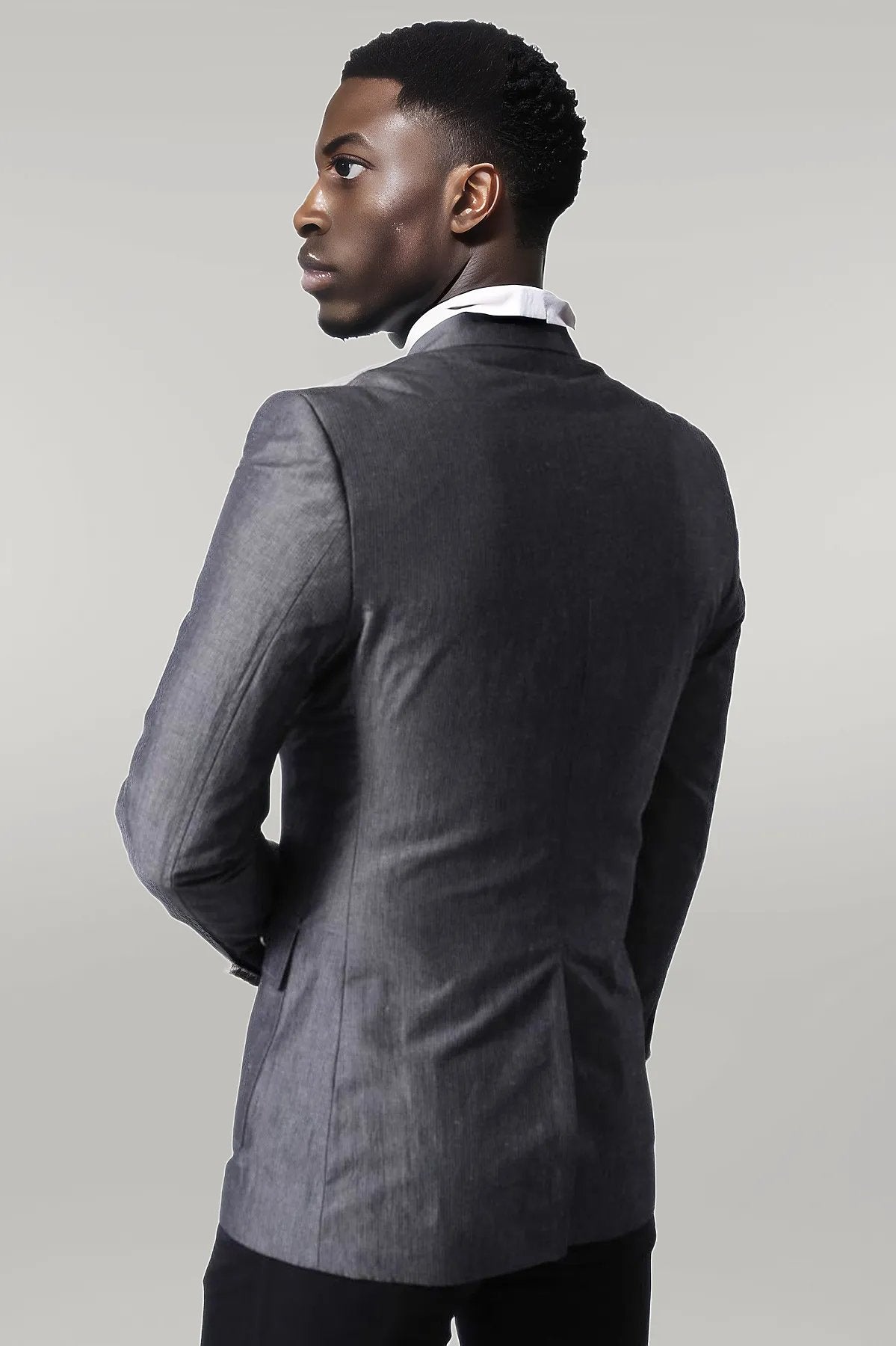 Double Button Bag Pocket Pointed Collar Grey Jacket-Wessi