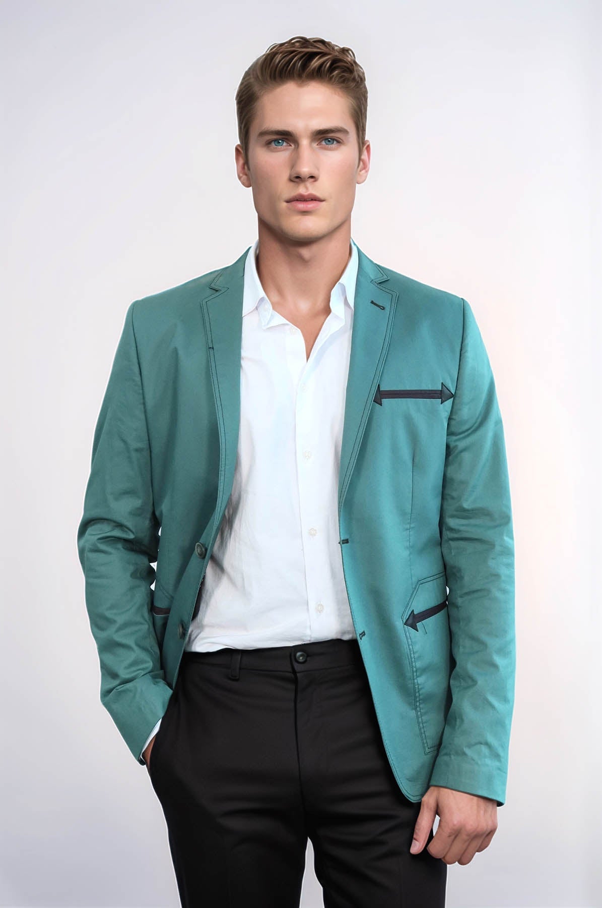 Double Button Mono Lapel Bag Pocket...