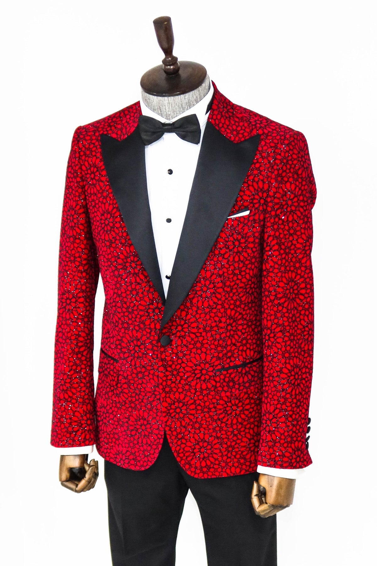 Glitter Floral Patterned Burgundy Men Party...
