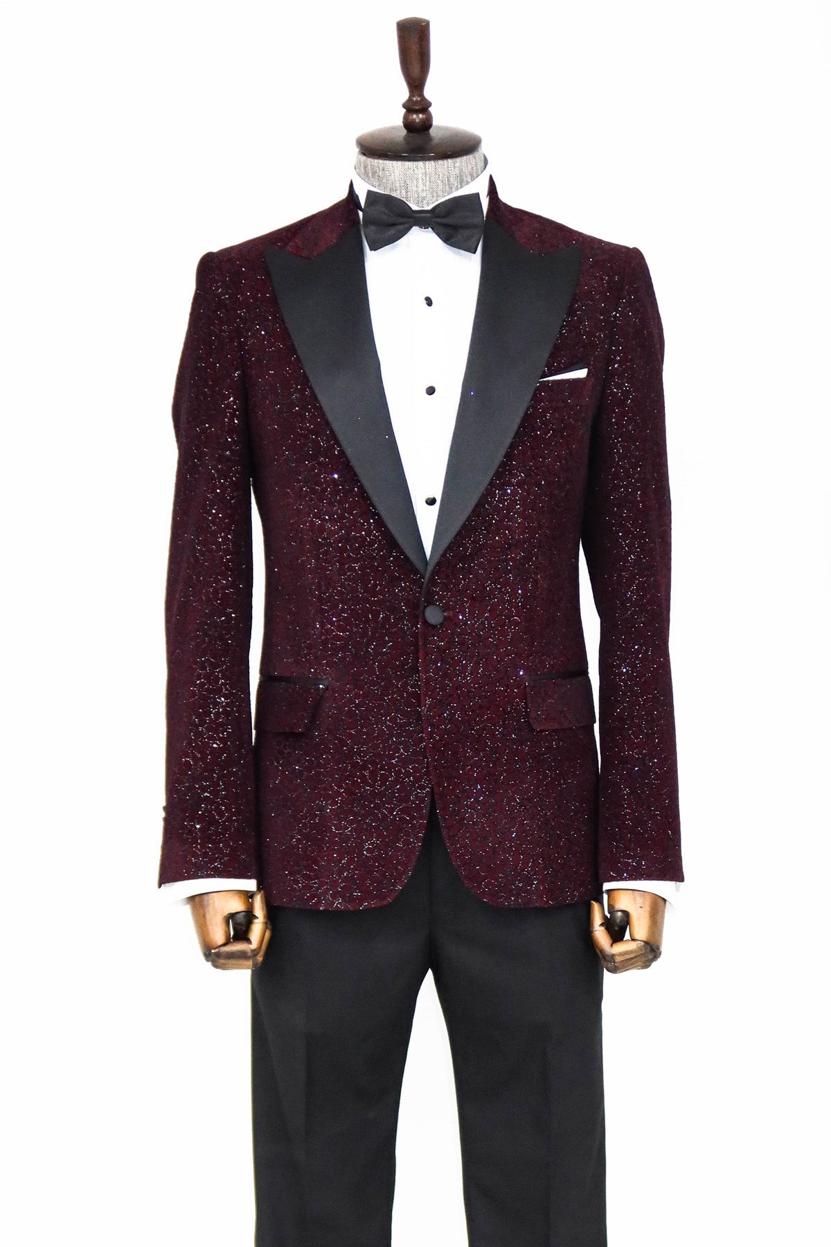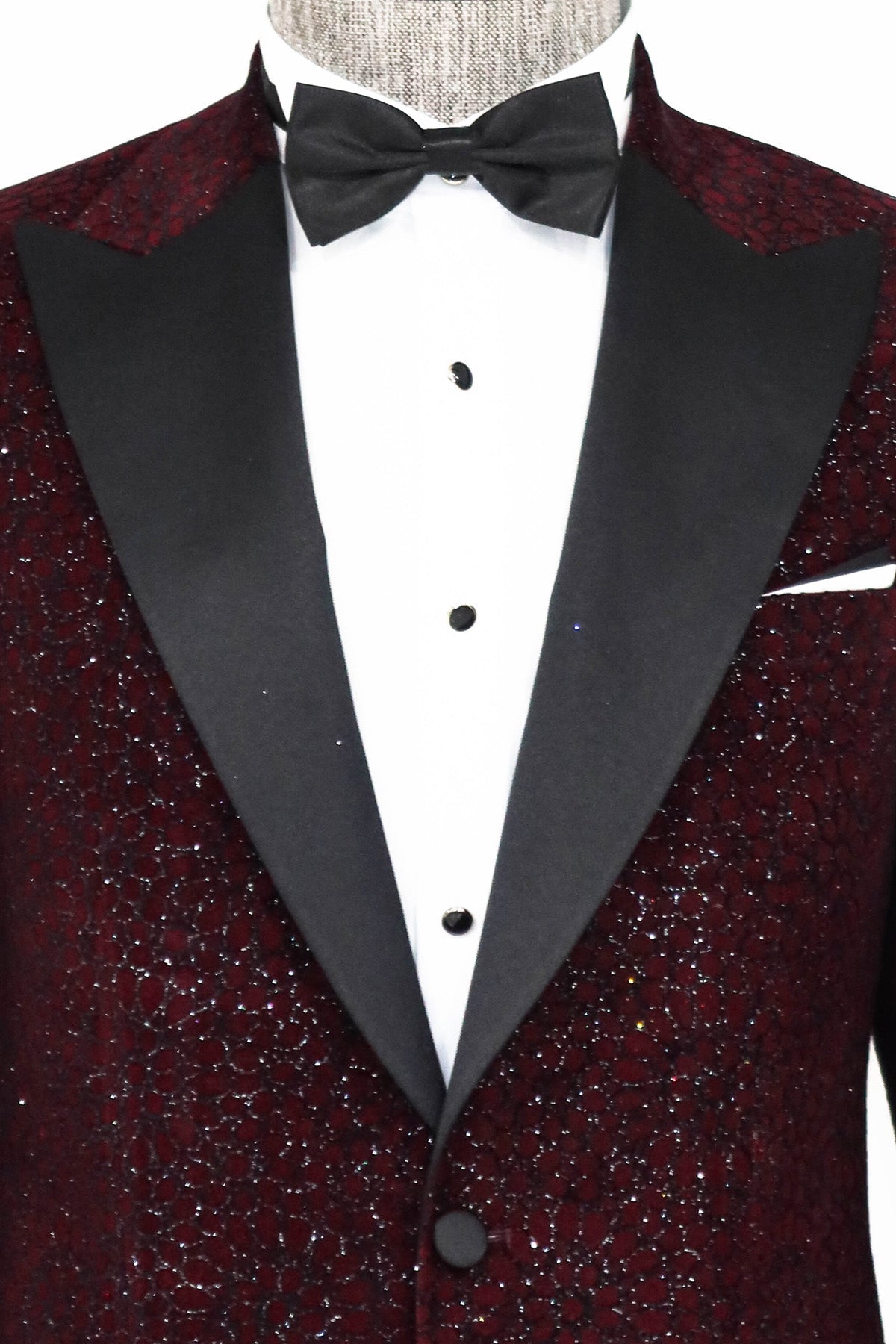 Glitter Floral Patterned Burgundy Men Party Blazer
