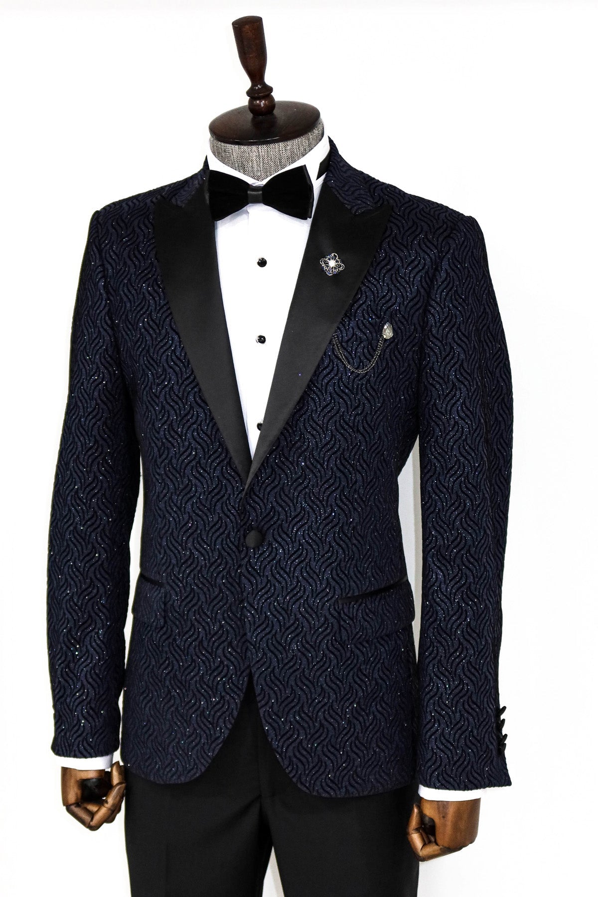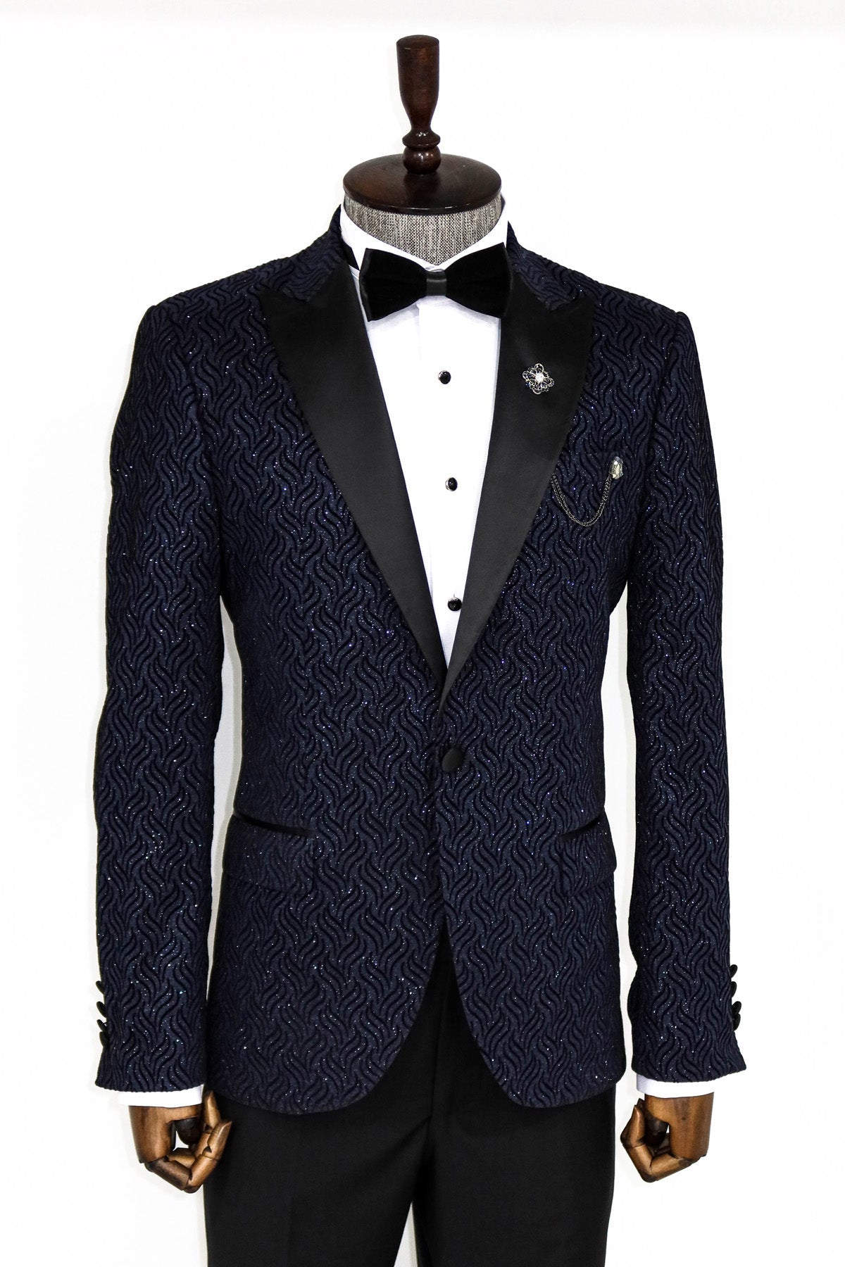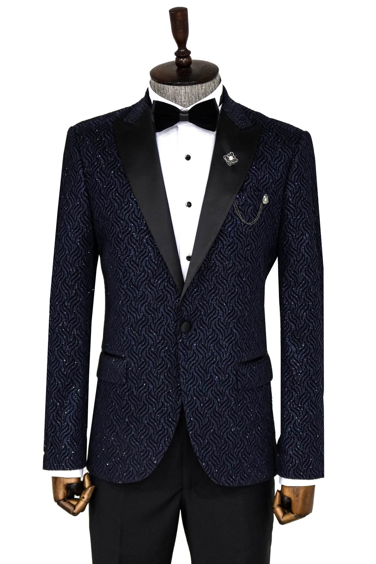 Glitter Shiny Navy Blue Men Blazer...
