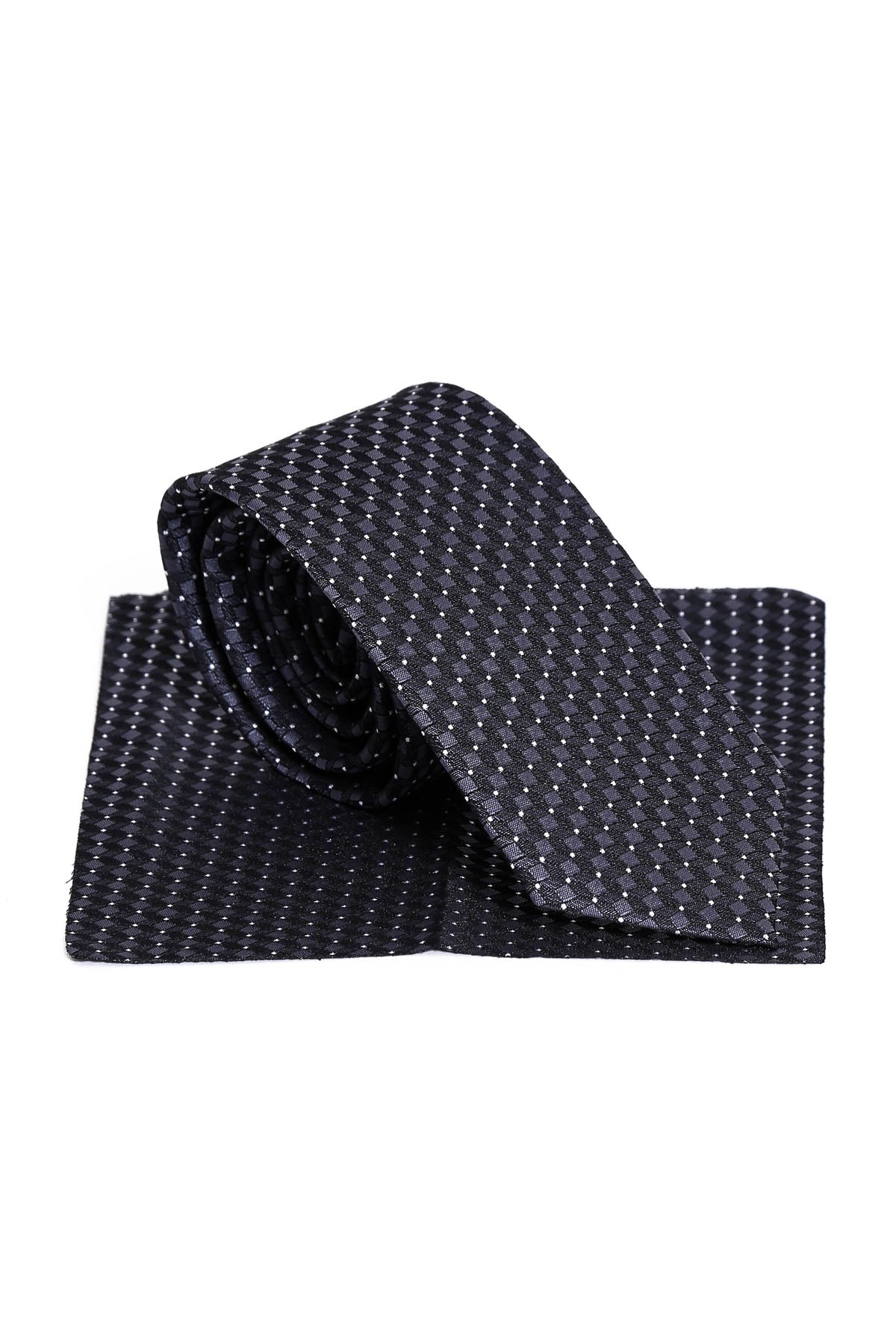 Grey Cube Patterned Men Black Tie
