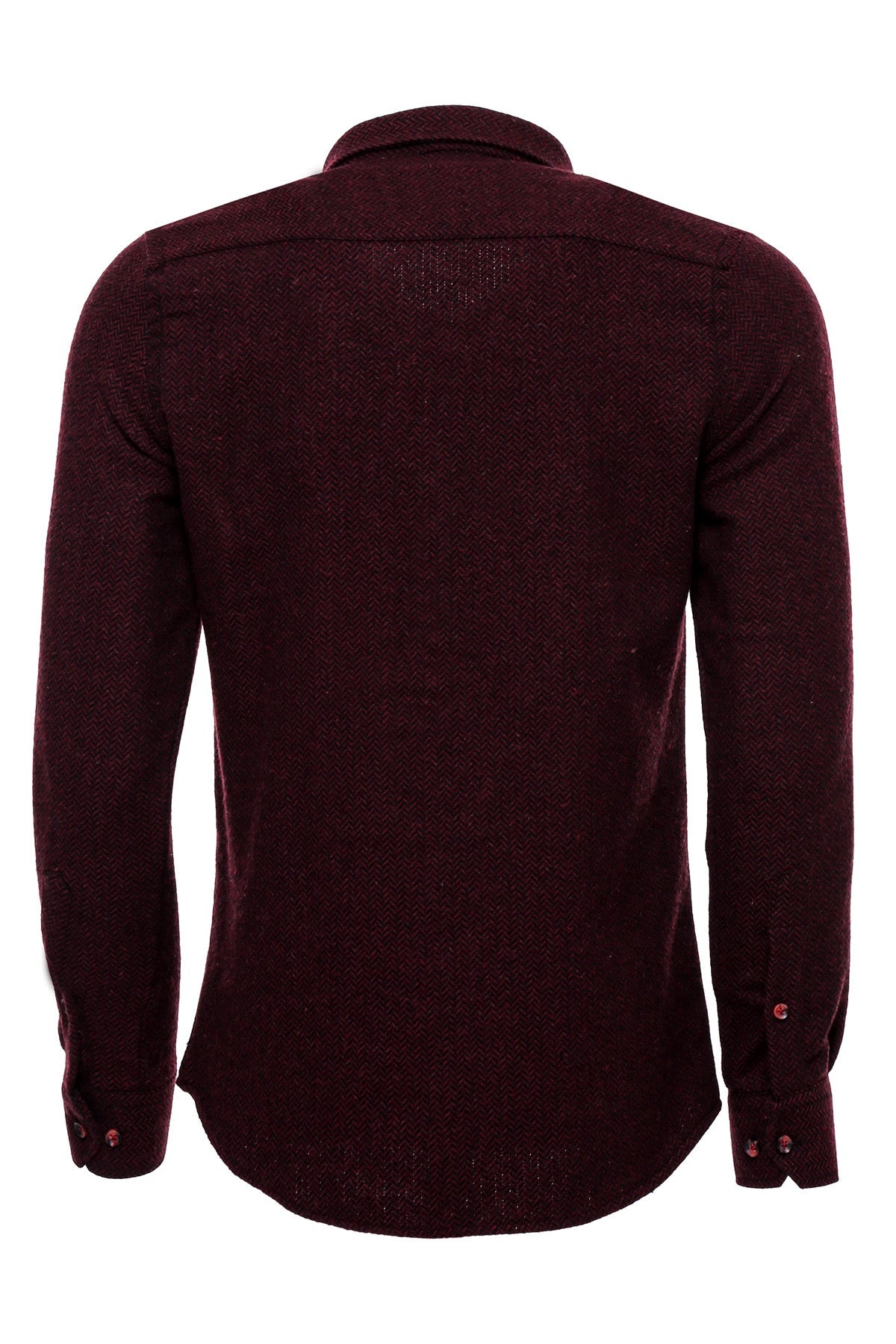 Herringbone Patterned Dark Burgundy Men Lumberjack...