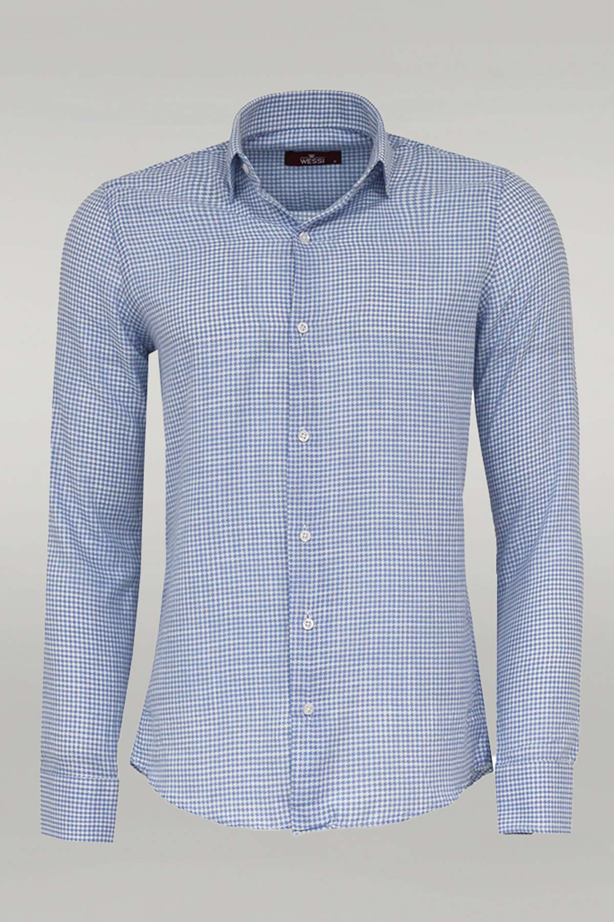 Houndstooth Pattern Sky Blue Men Shirt
