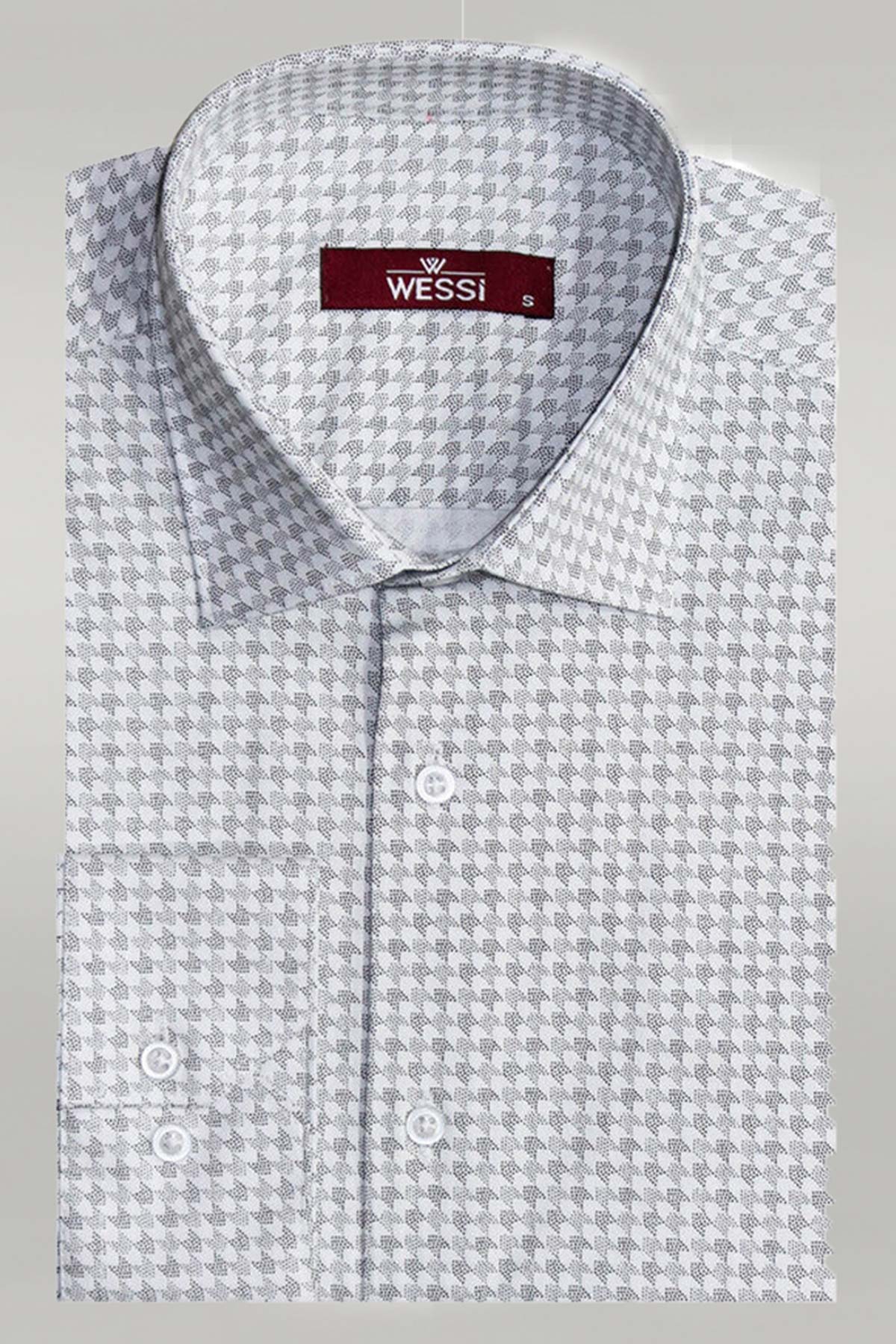 Houndstooth Pattern Slim Fit Ecru Men...