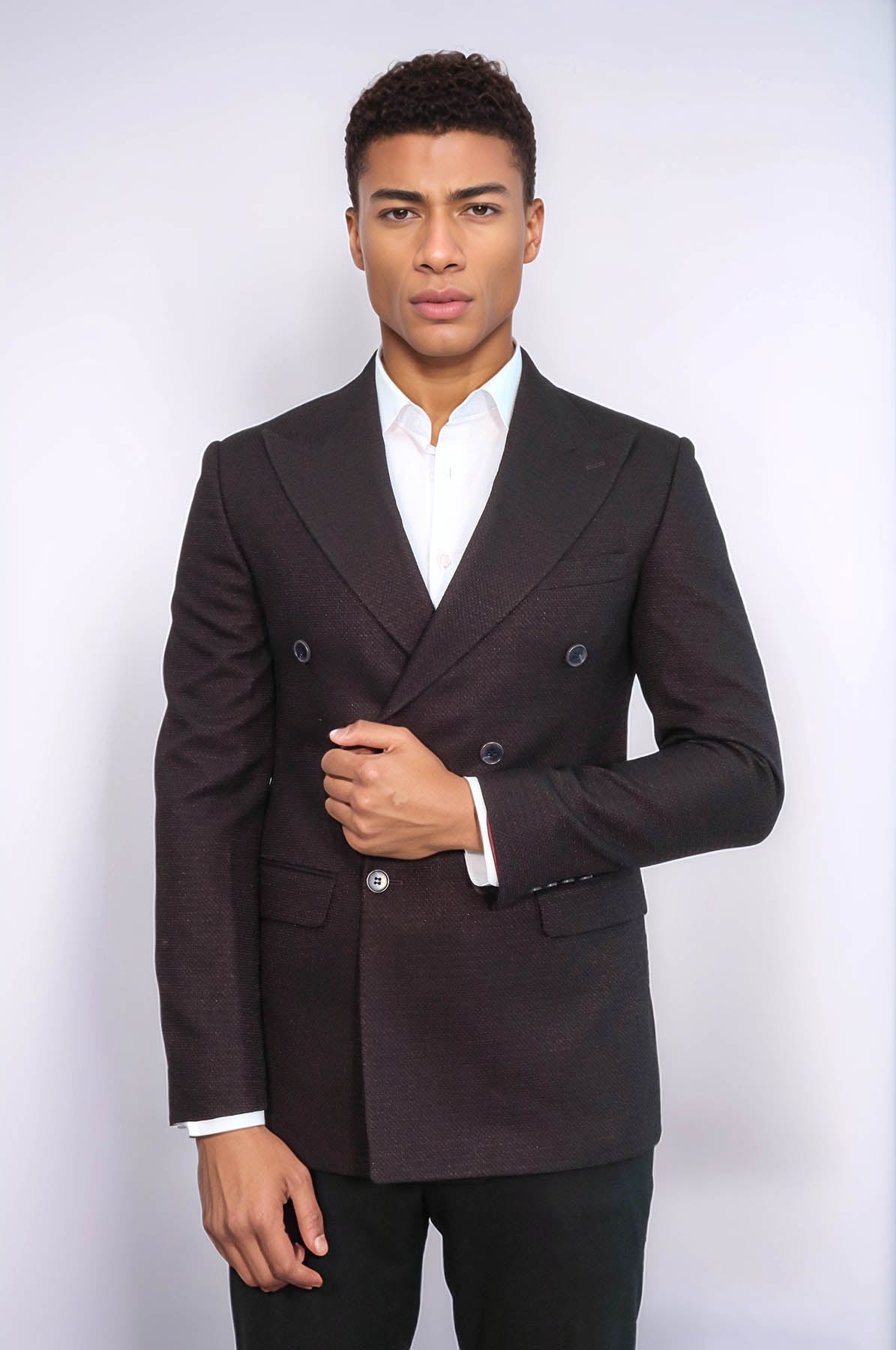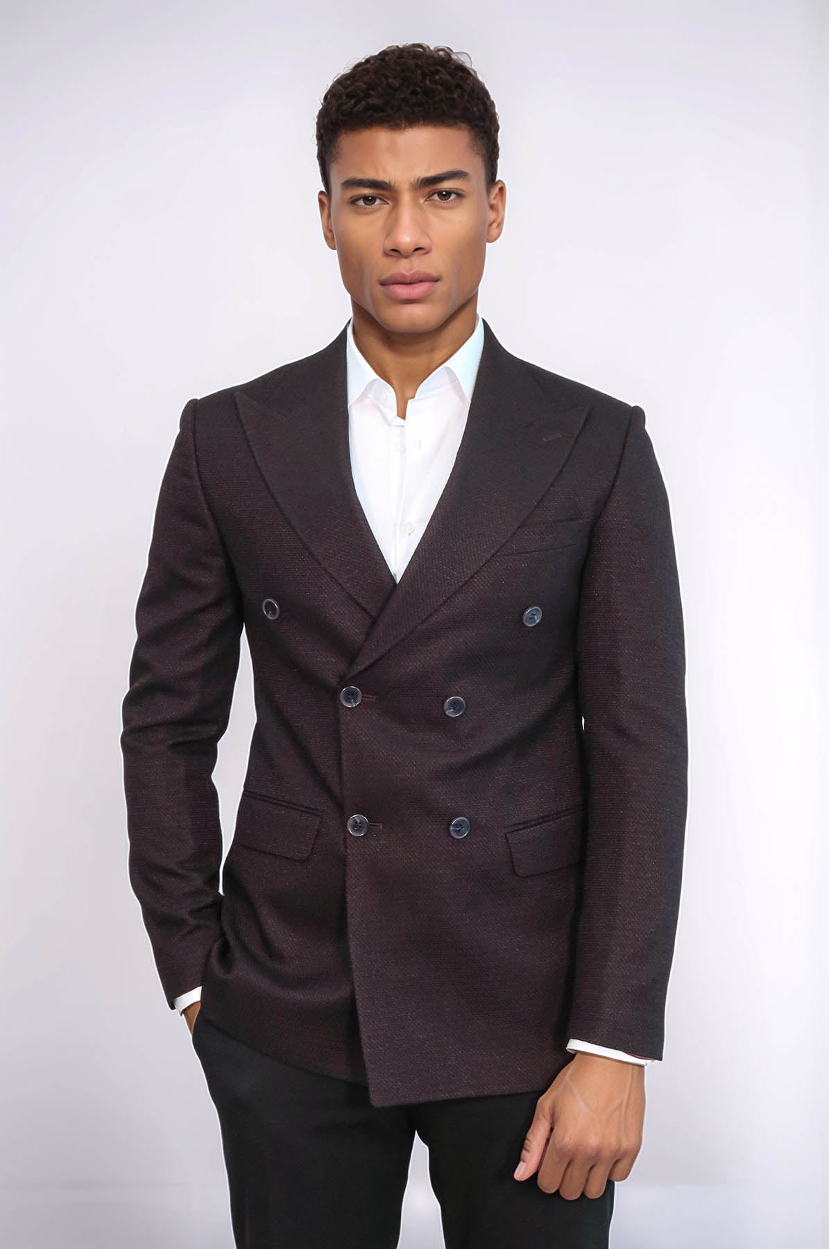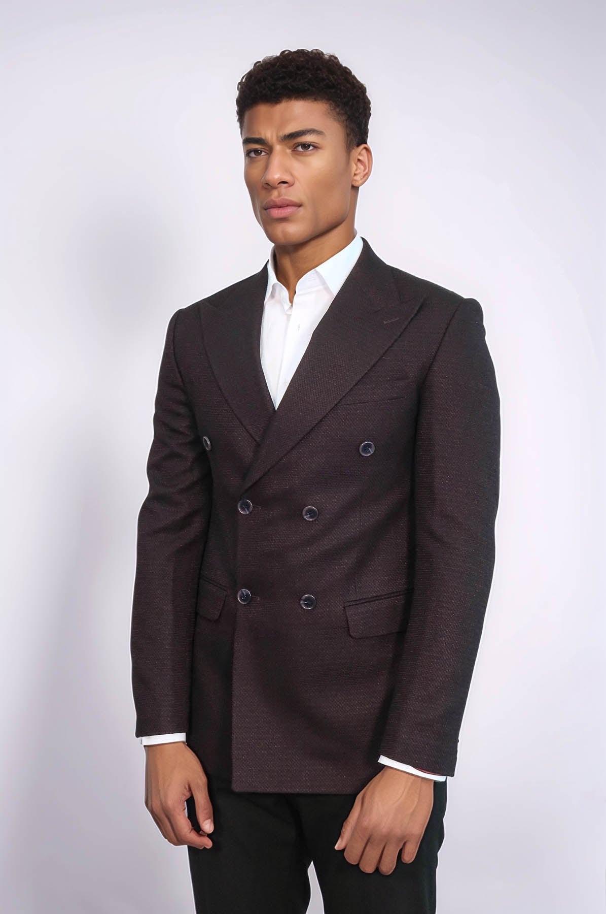 Houndstooth Patterned Burgundy Men Double Breasted...