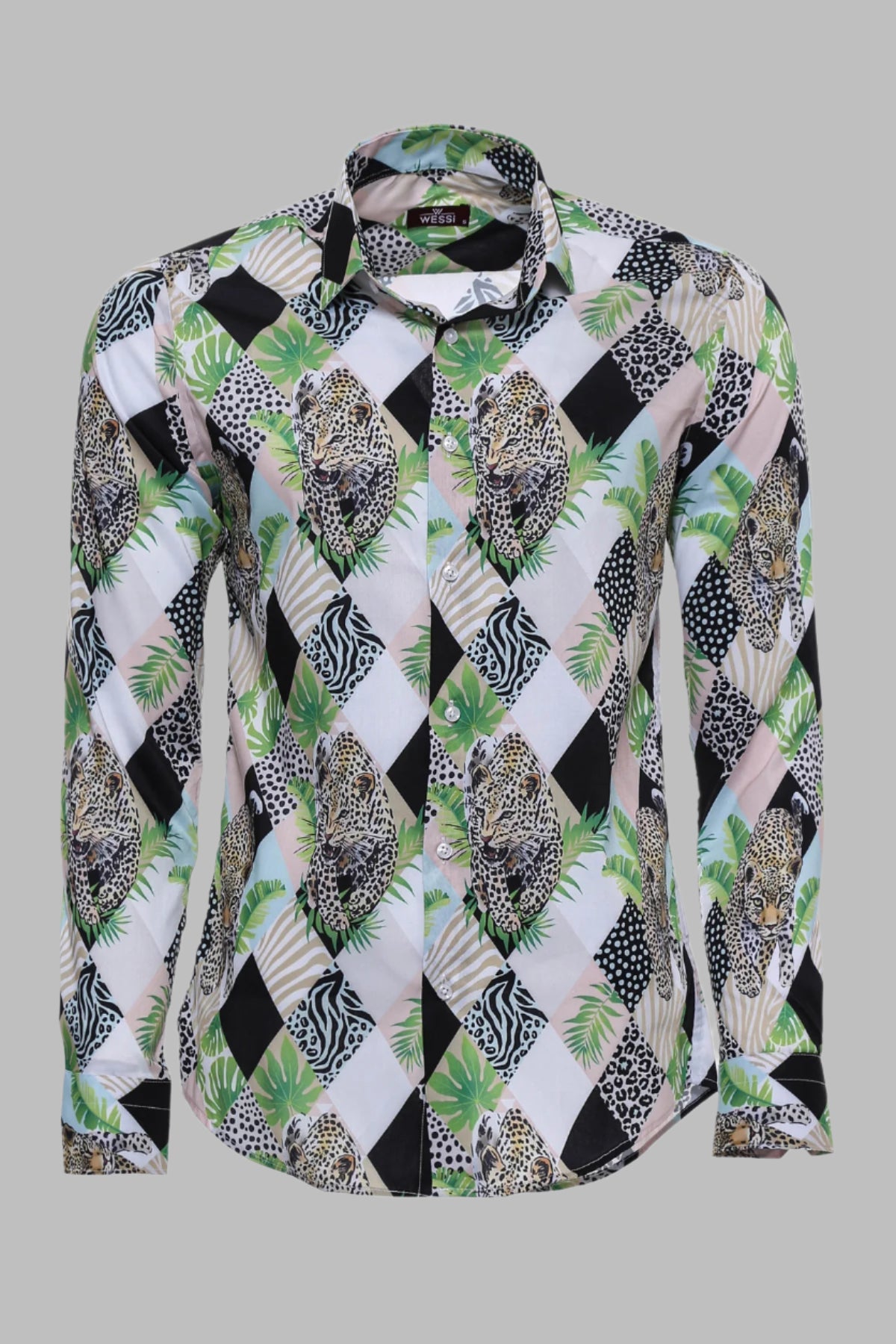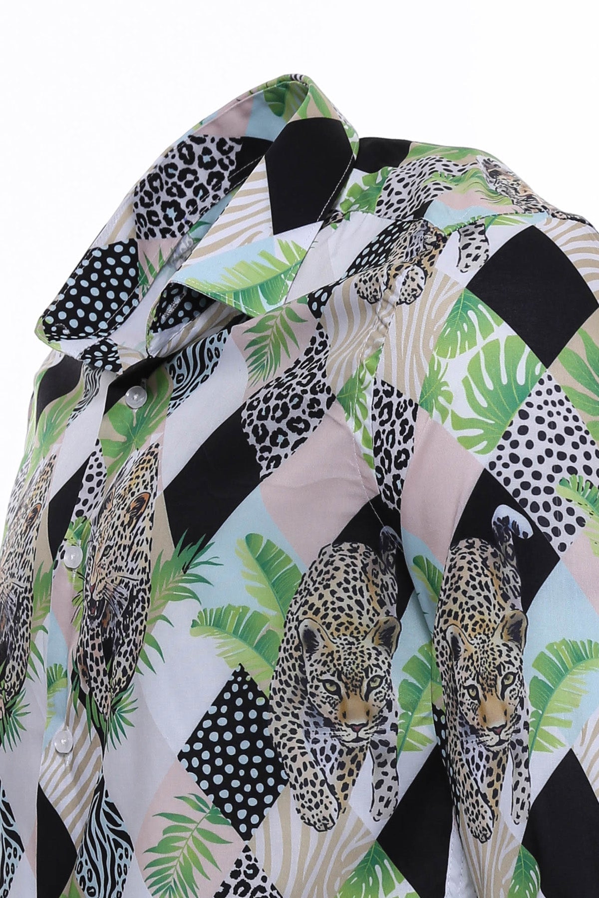 Leopard Pattern Long Sleeves Multicolor Men...