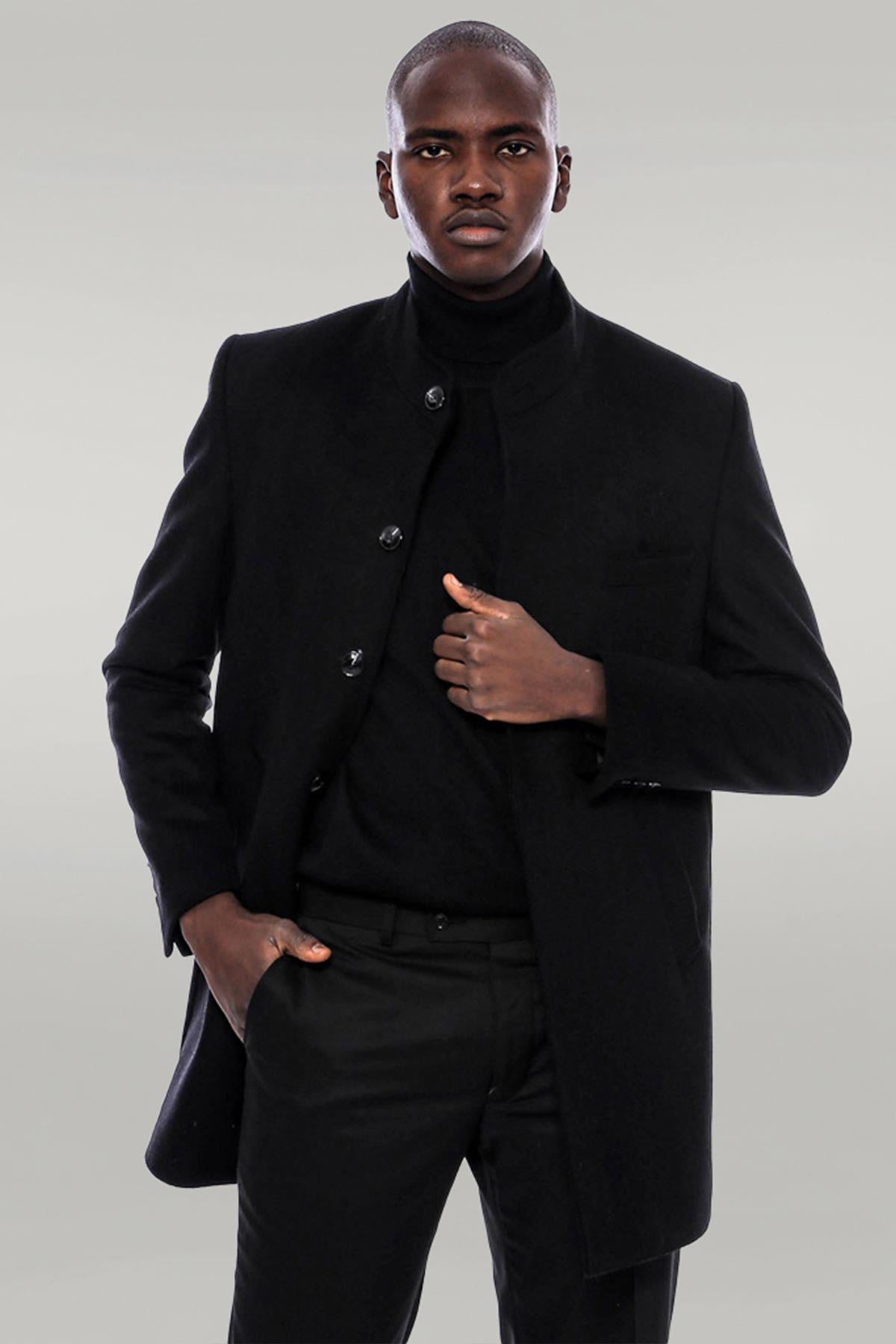 Mandarin Collar Men's Long Coat