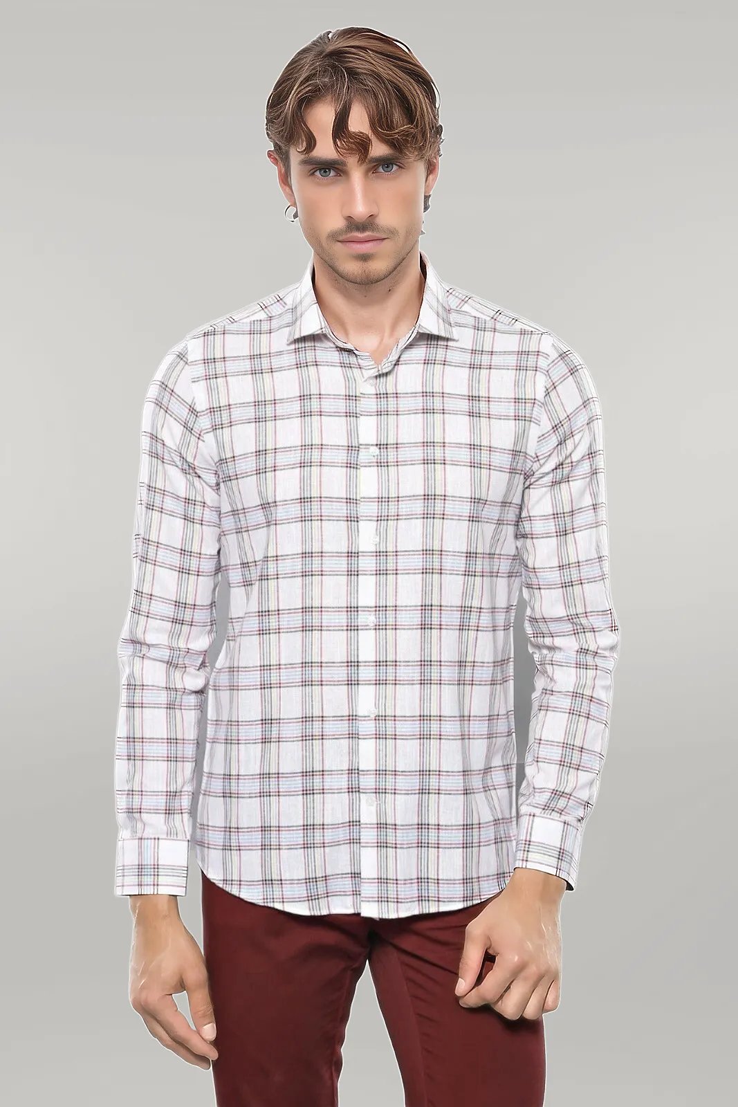 Casual White Plaid Shirt |