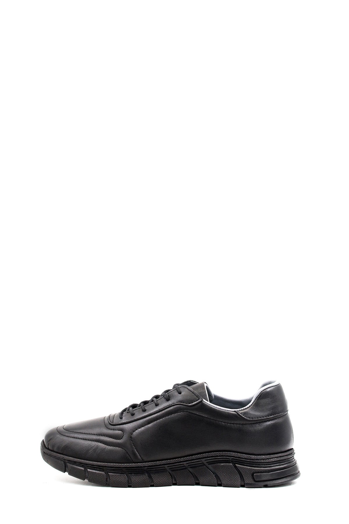 Men's All-Black Leather Sneakers with Textured...