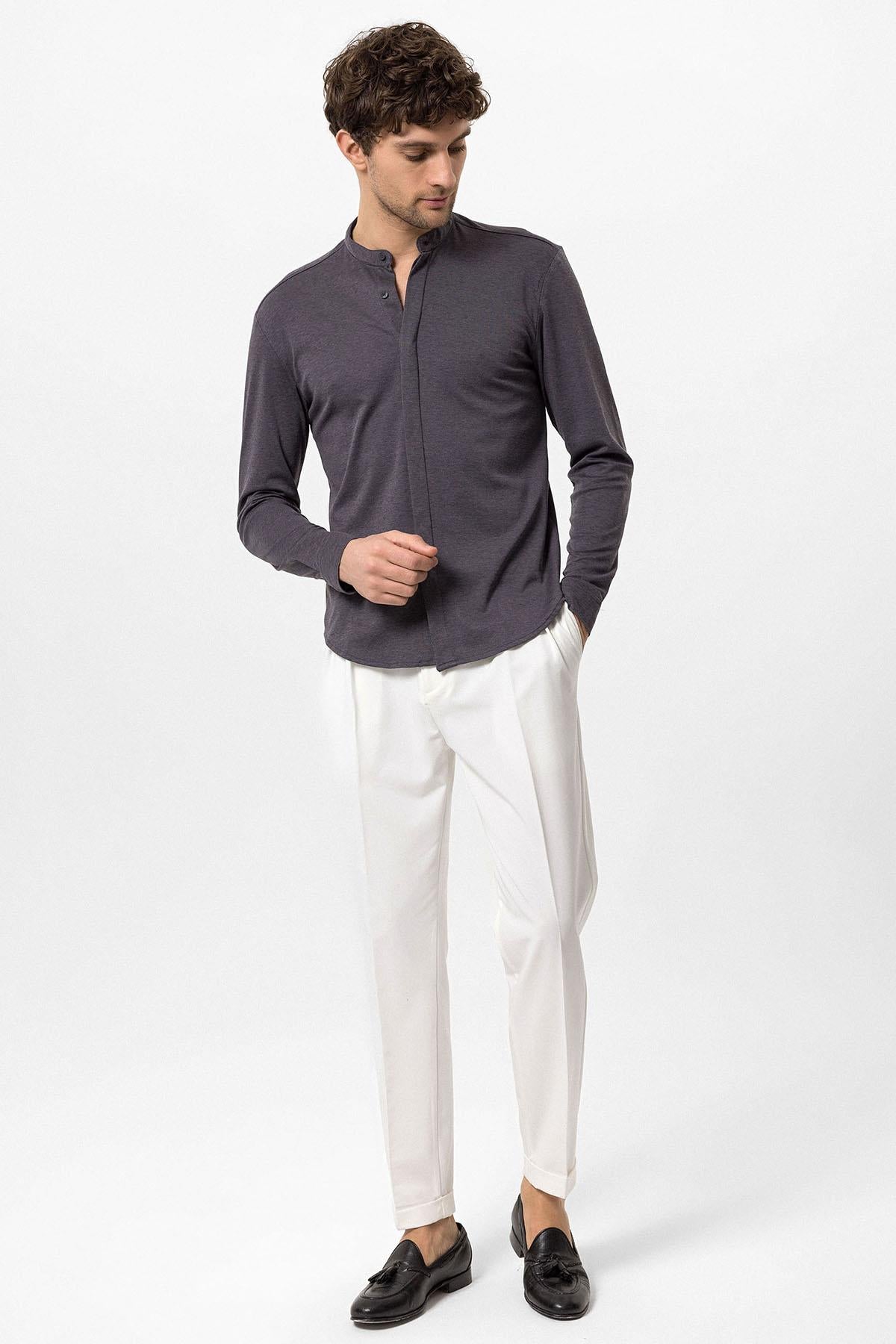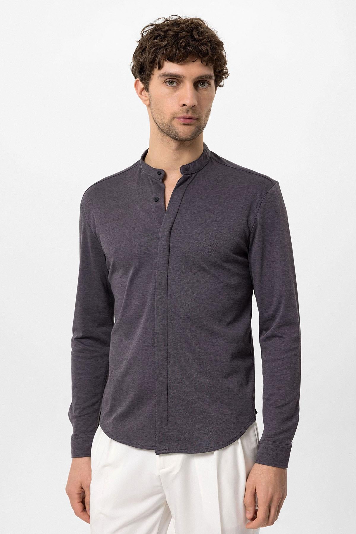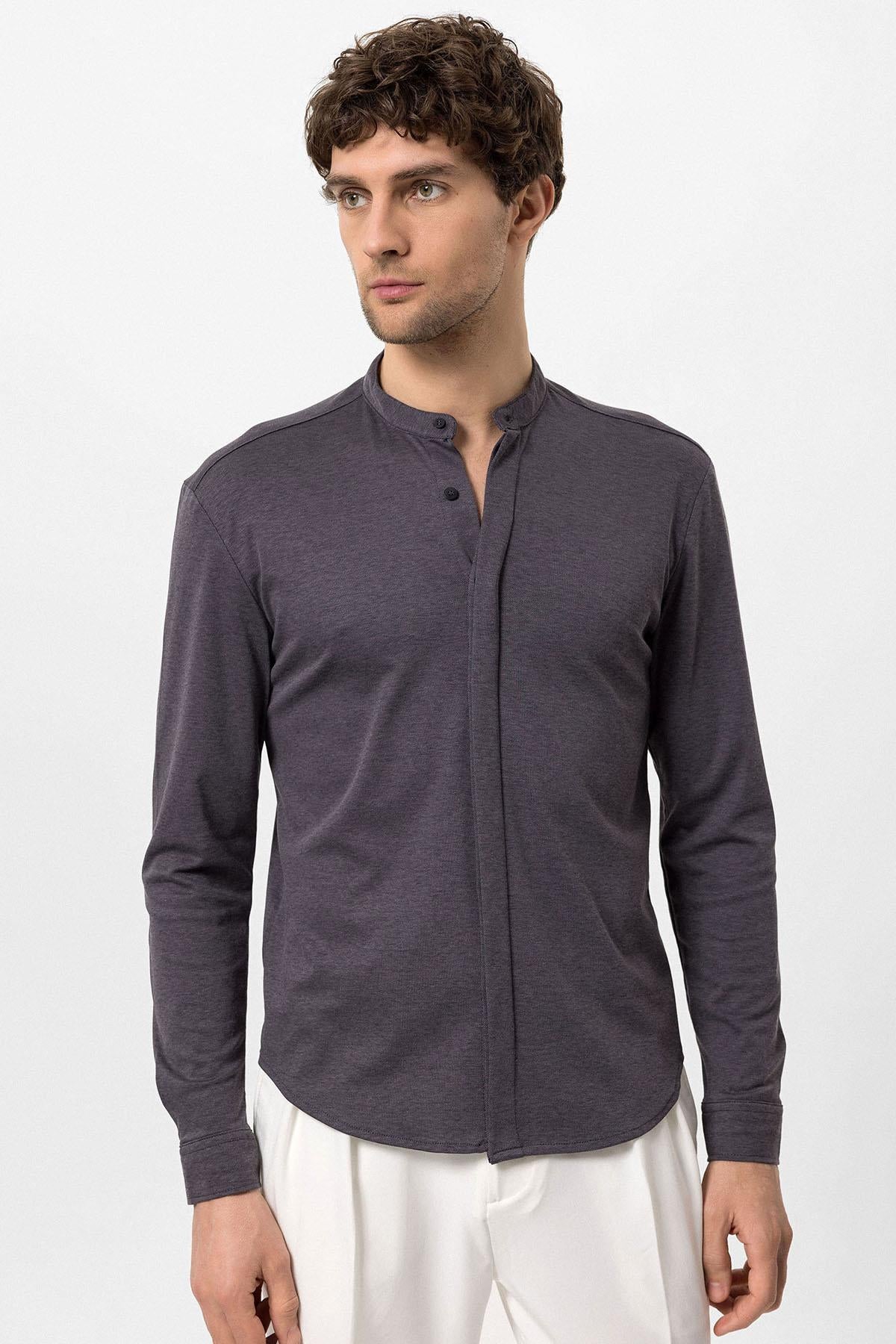 Men's Anthracite Classic Collar Hidden Button...