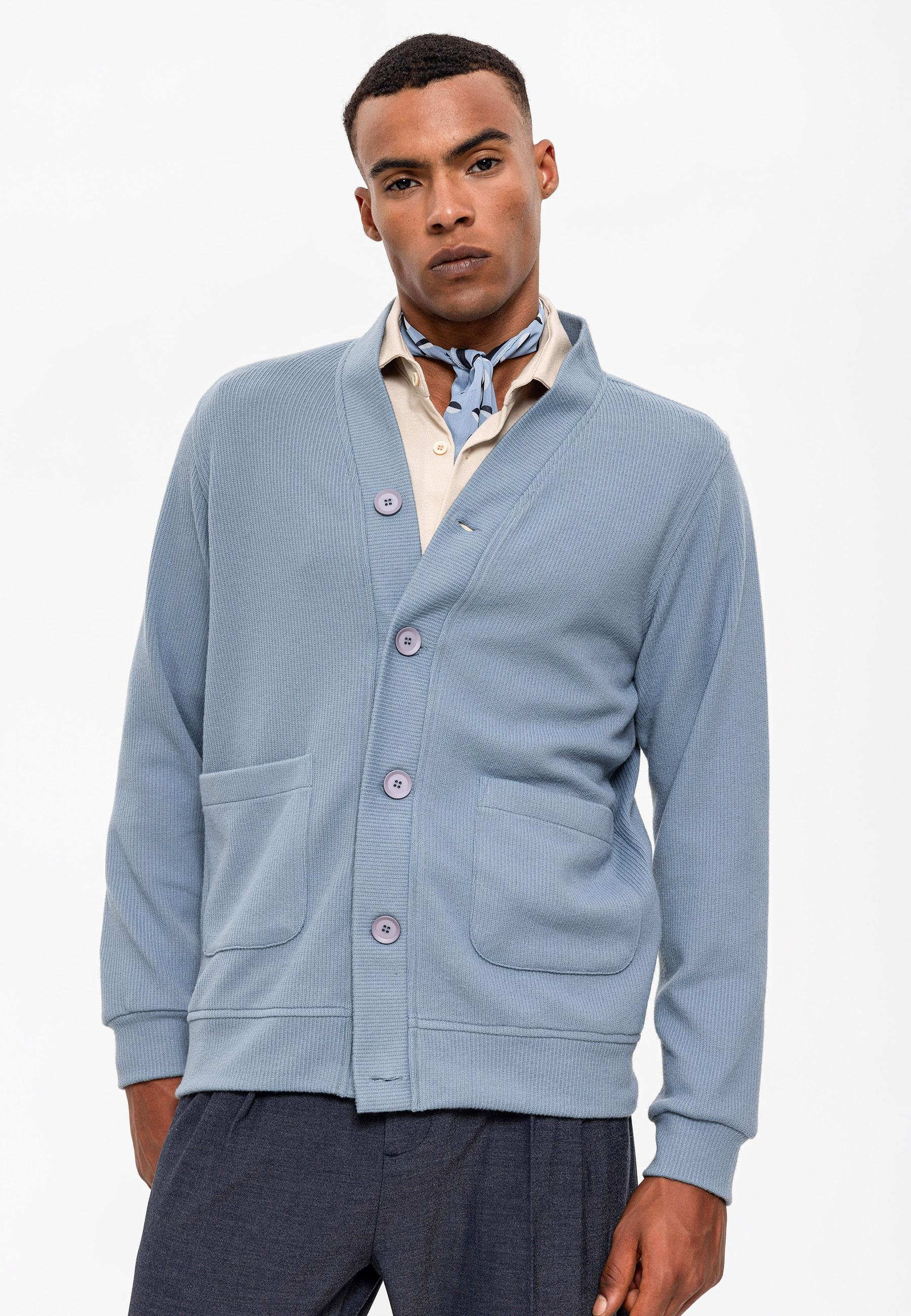 Men's Baby Blue V-Neck Cardigan with...