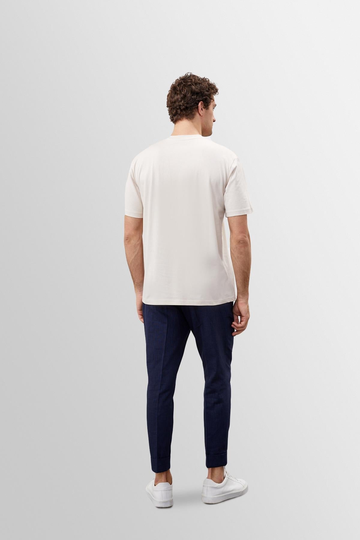 Men's Beige Crew Neck Basic T-Shirt