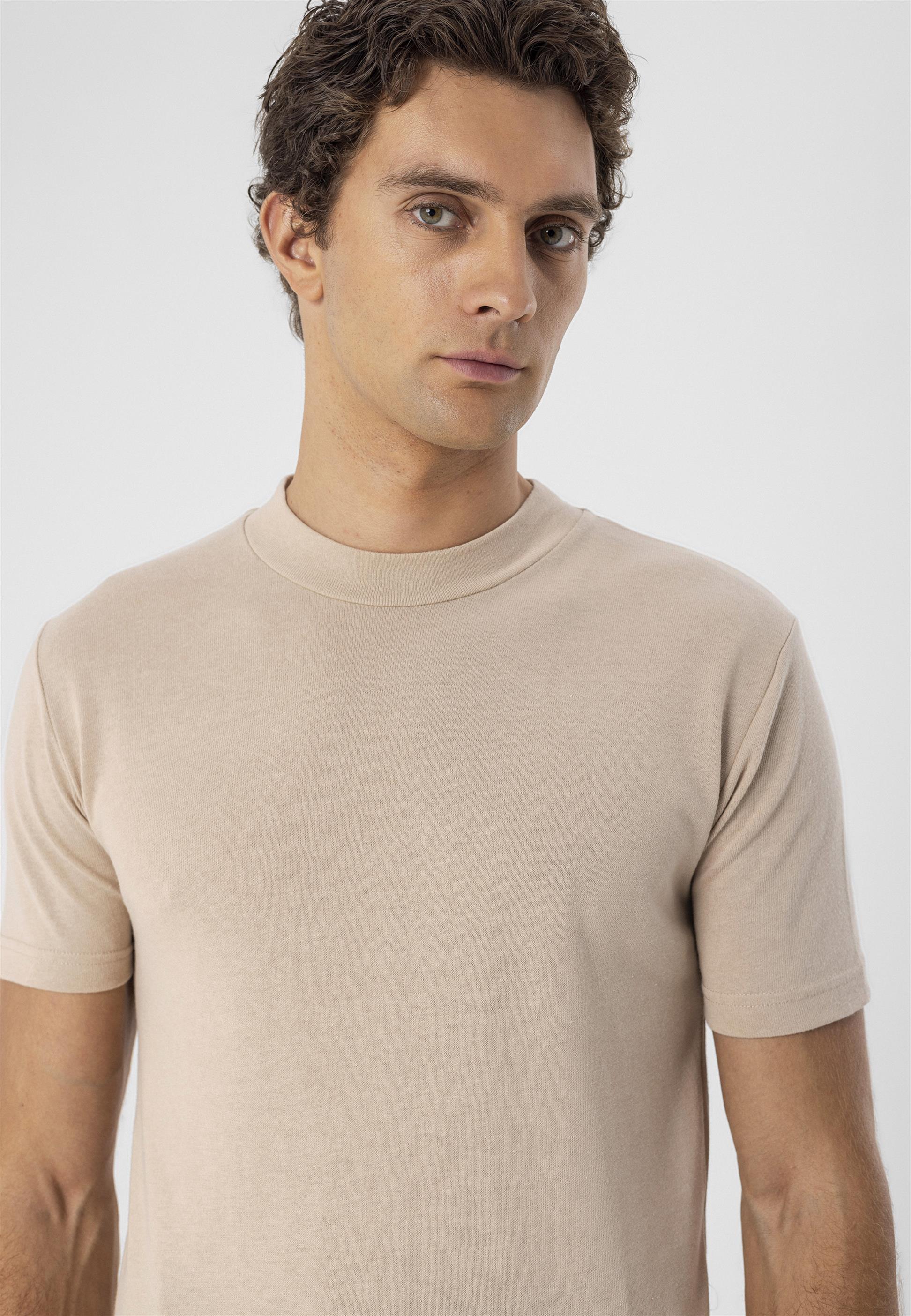 Men's Beige Crew Neck Slim Fit...