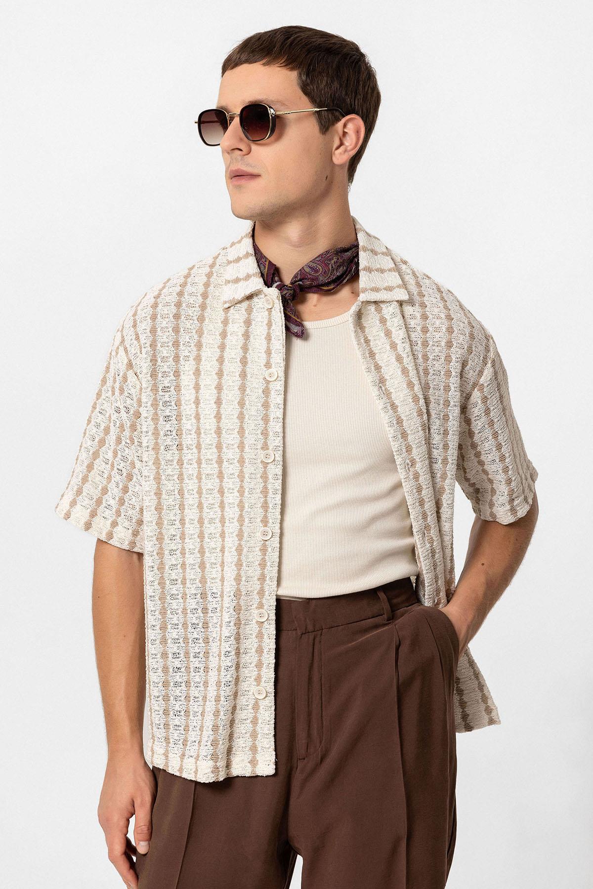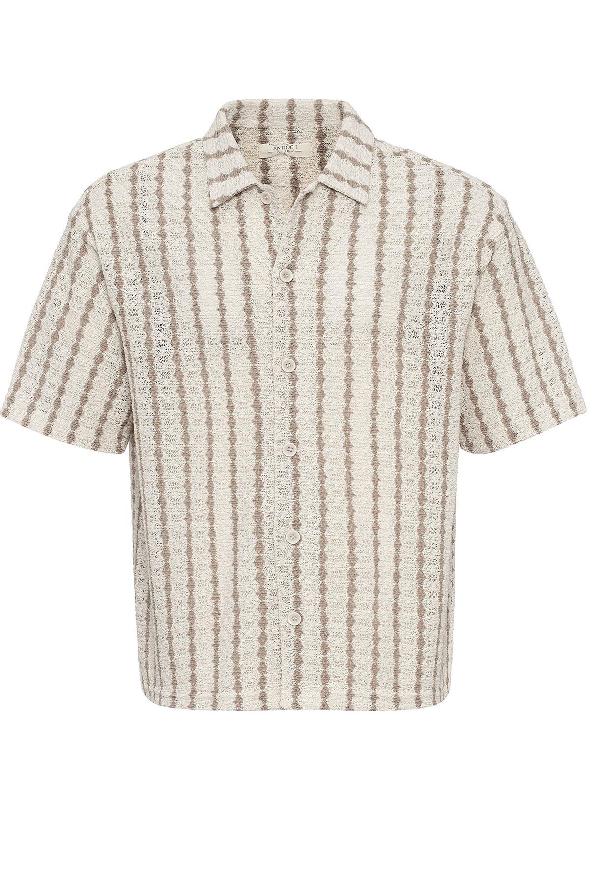 Men's Beige Striped Knit Short-Sleeve Shirt