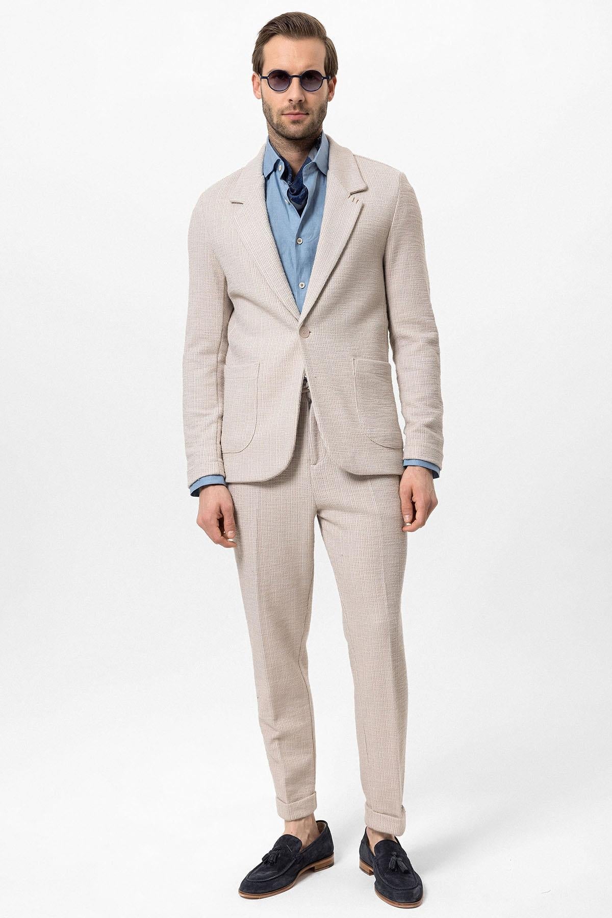 Men's Beige Textured Plain Blazer