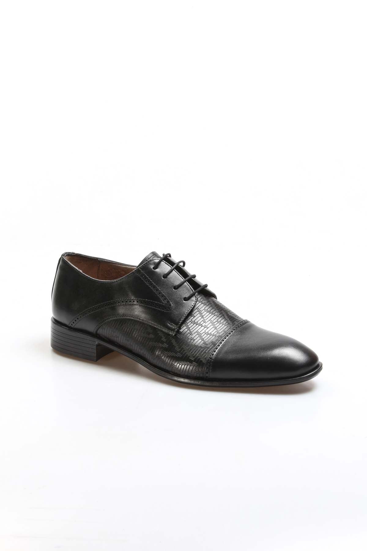 Men's Black Embossed Leather Oxfords-Wessi