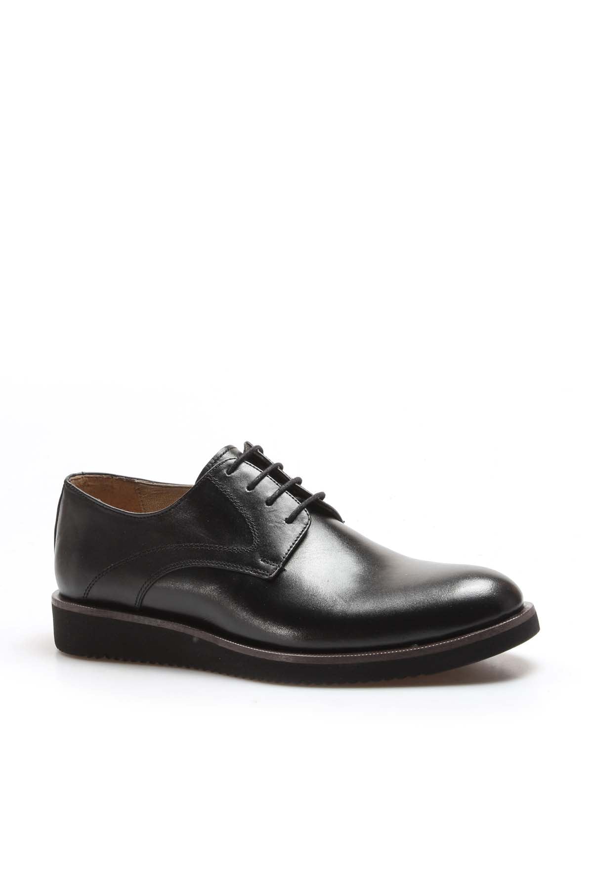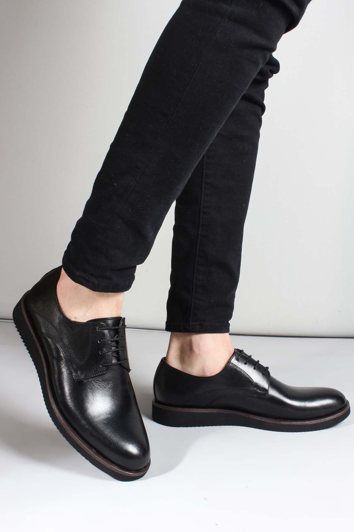 Men's Black Leather Derby Shoes-Wessi