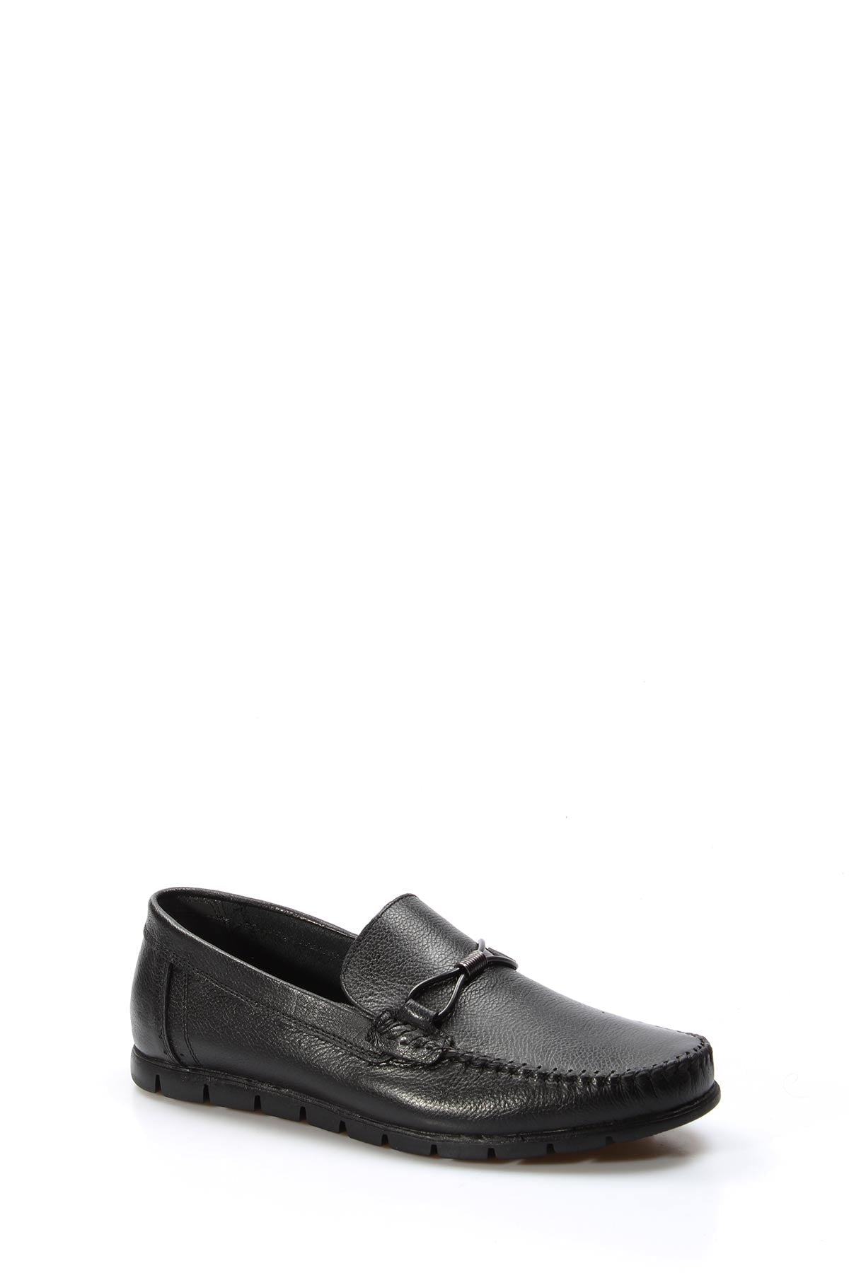 Men's Black Leather Driving Loafers-Wessi