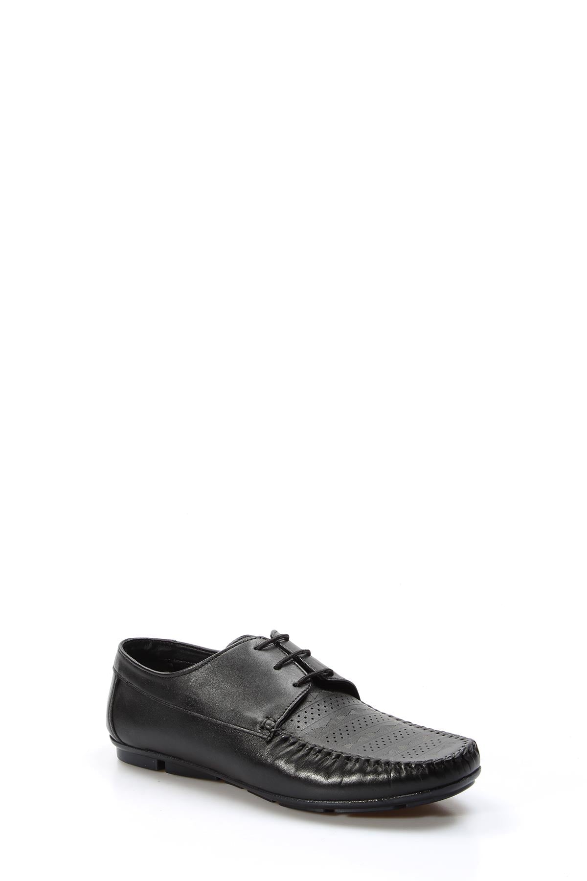 Men's Black Leather Lace-Up Loafers with...