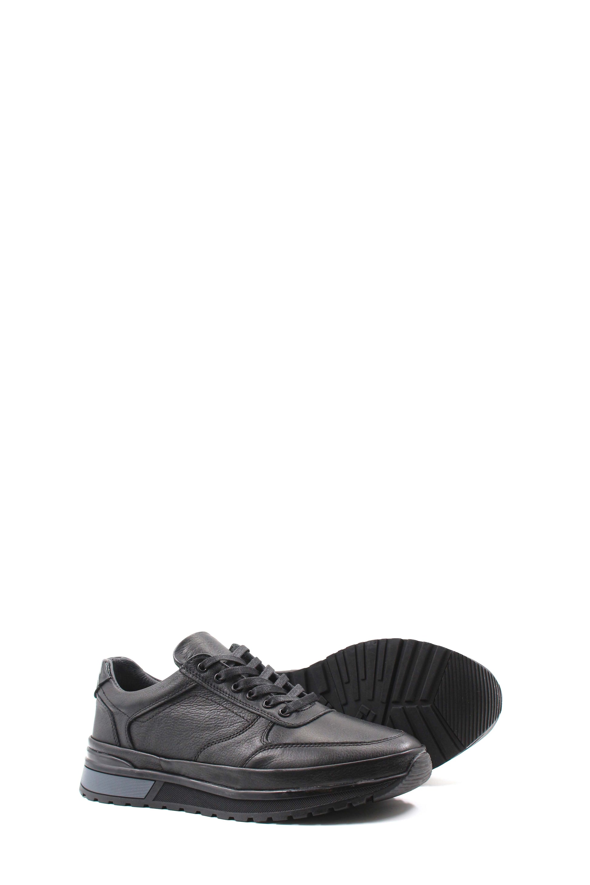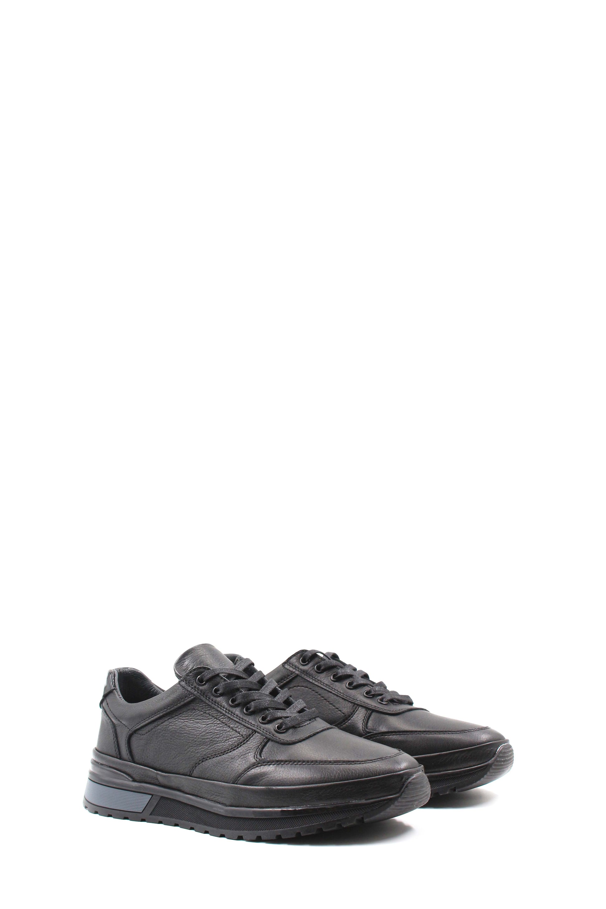 Men's Black Leather Lace-Up Sneakers with...