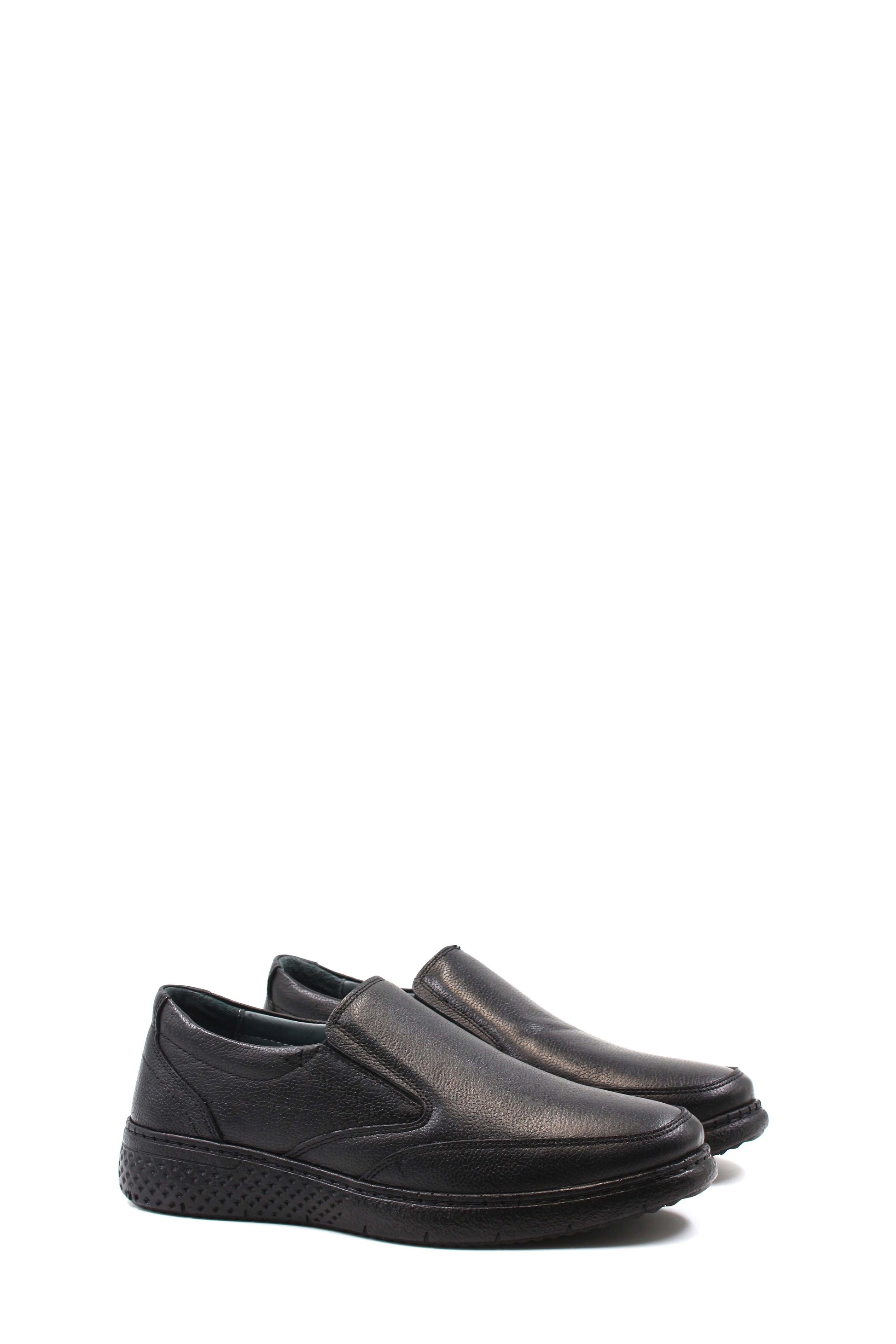 Men's Black Leather Slip-On Shoes with...