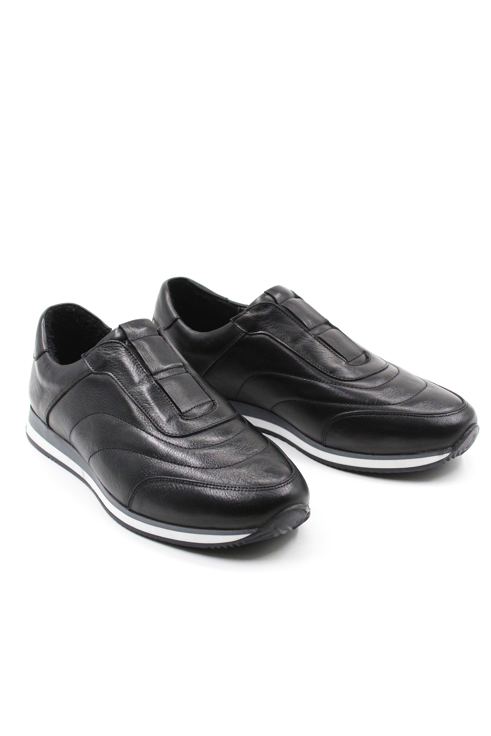 Men's Black Leather Slip-On Sneakers-Wessi