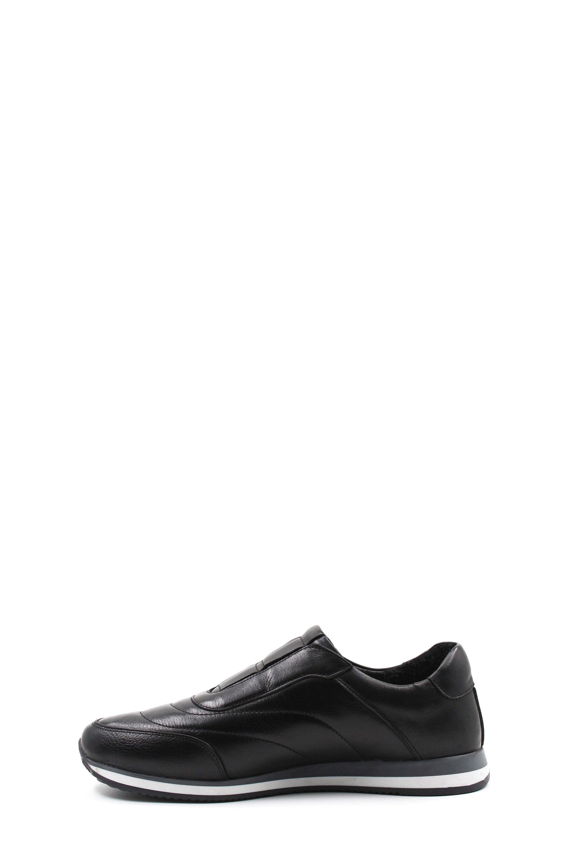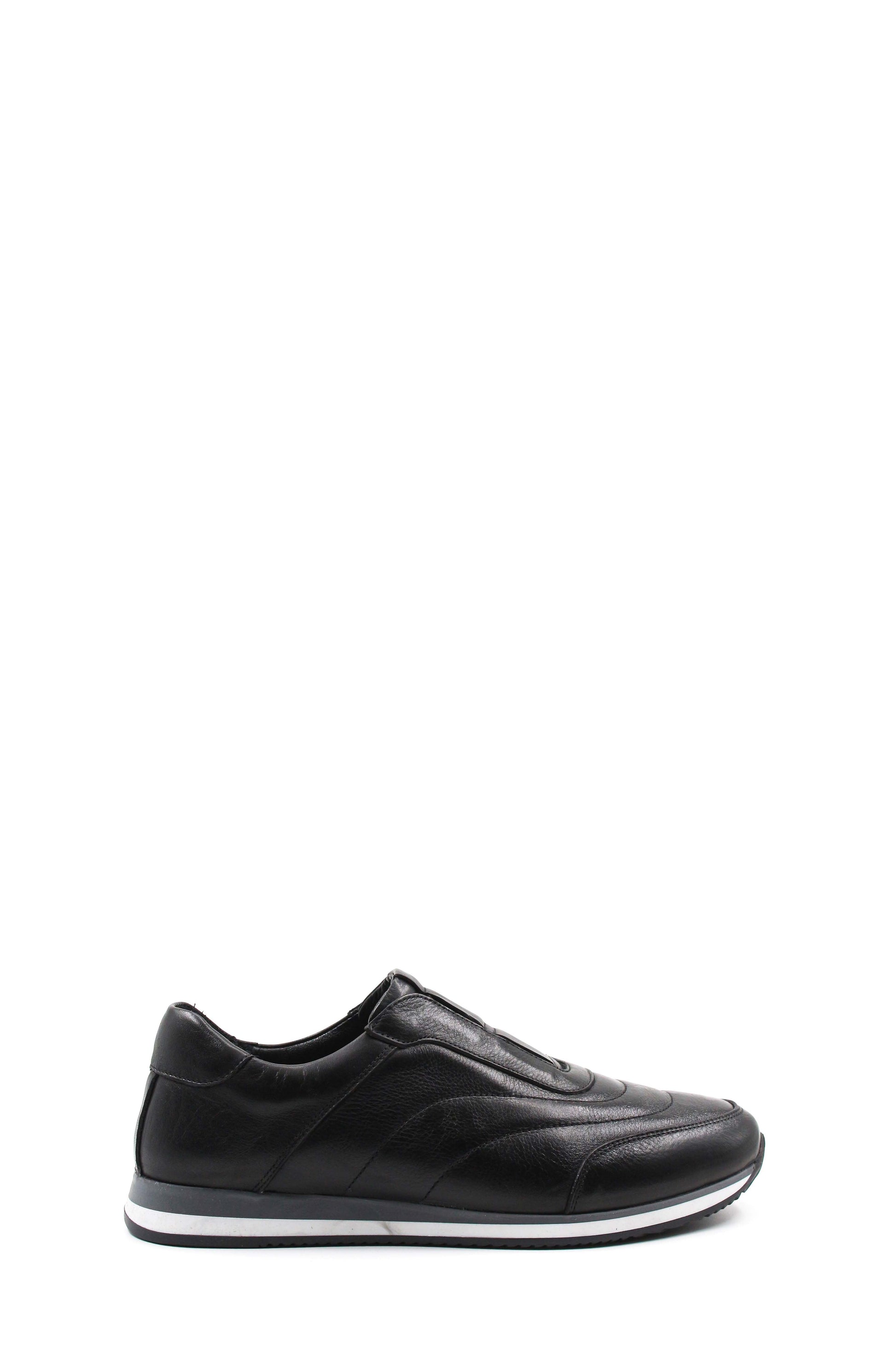 Men's Black Leather Slip-On Sneakers-Wessi