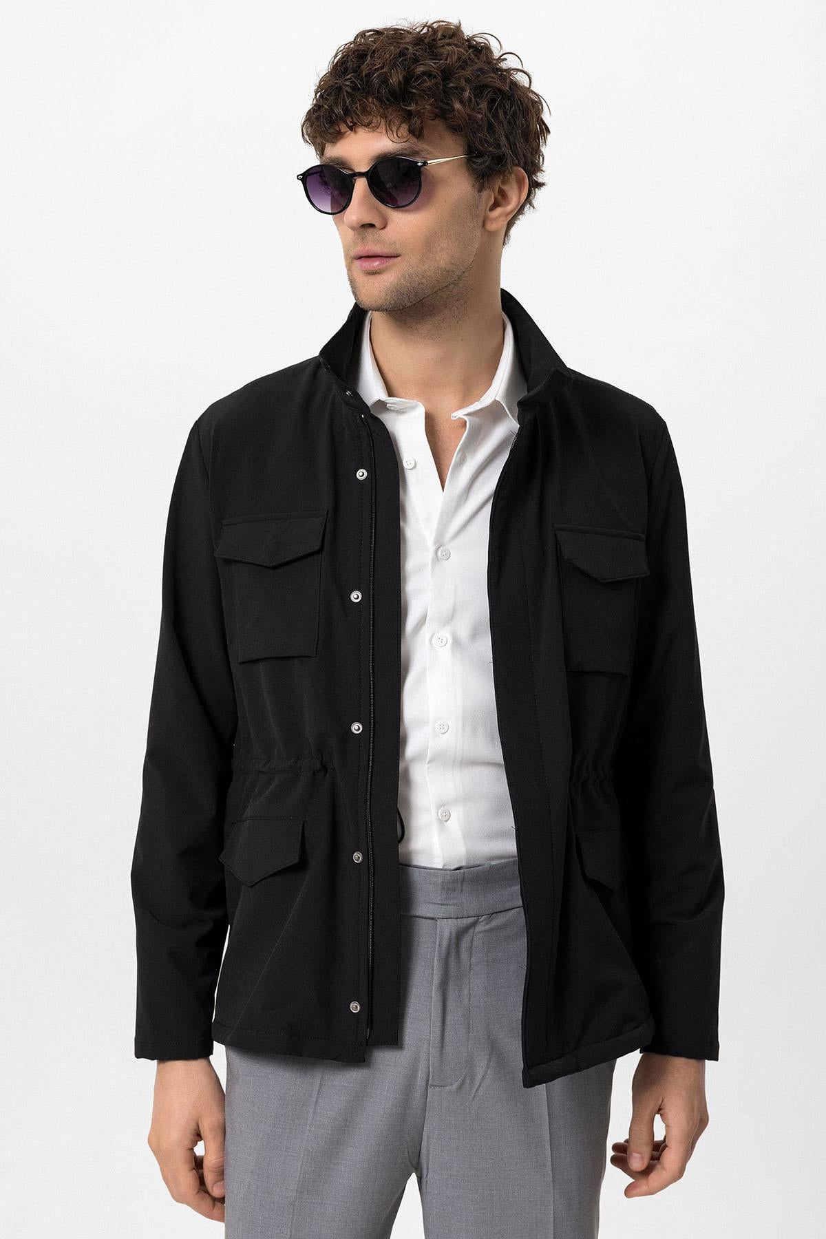 Men's Black Stand Collar Safari Jacket