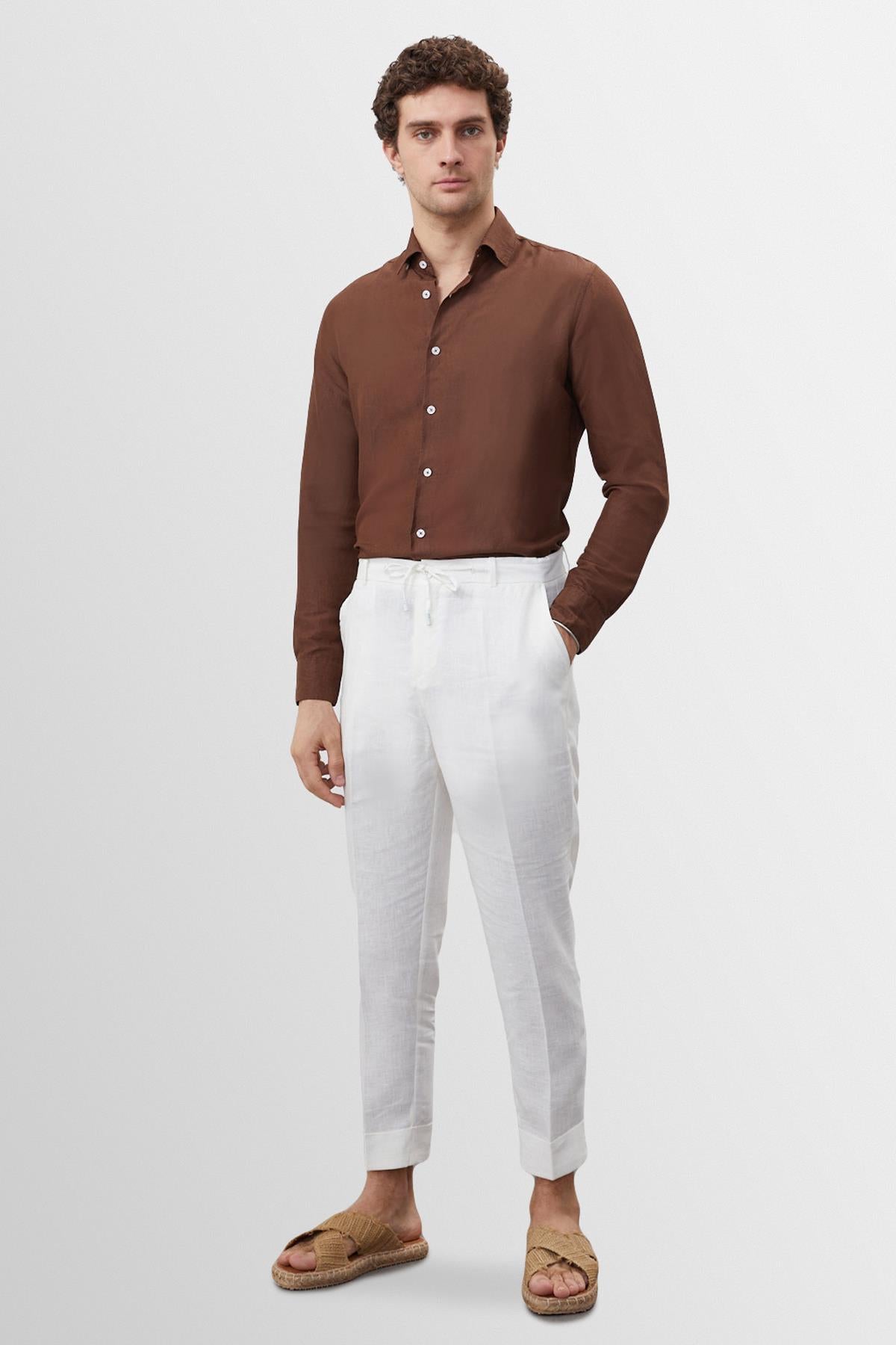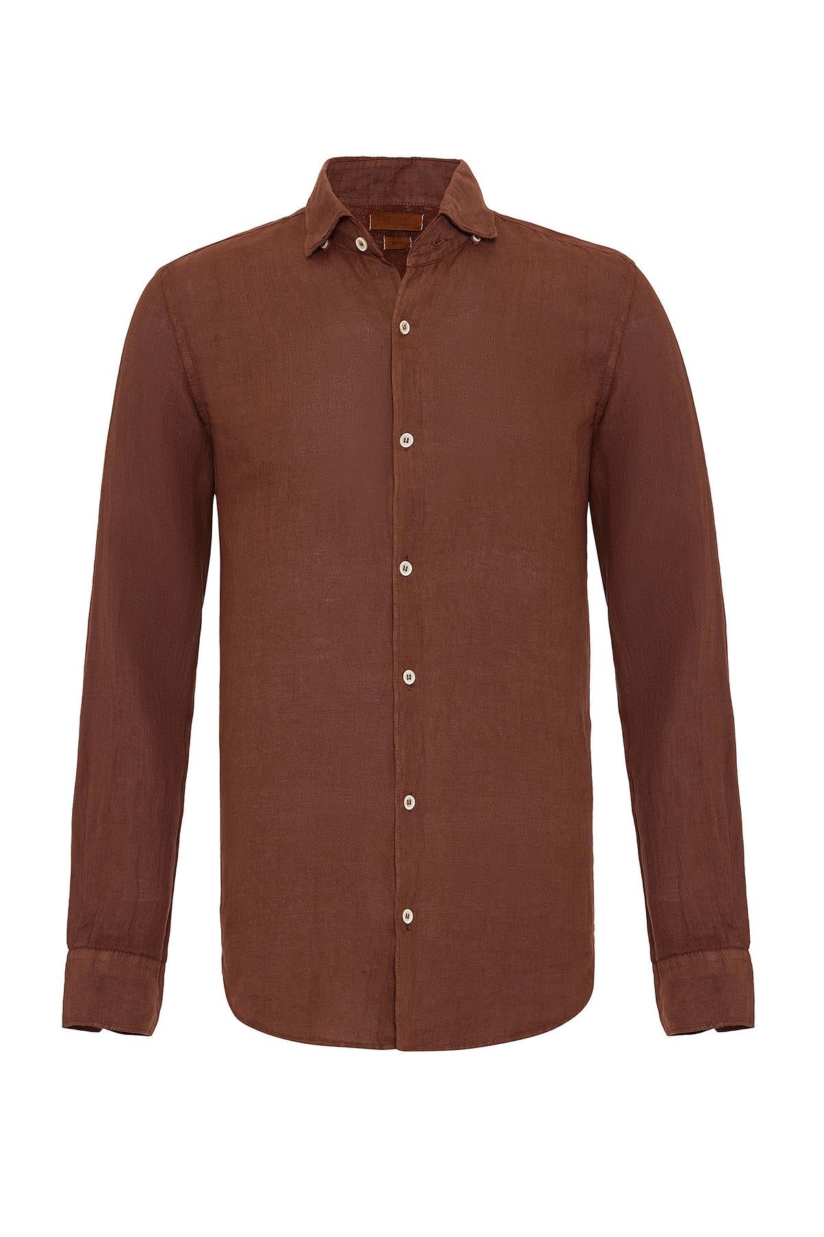 Men's Brown Collar Button Detailed 100%...