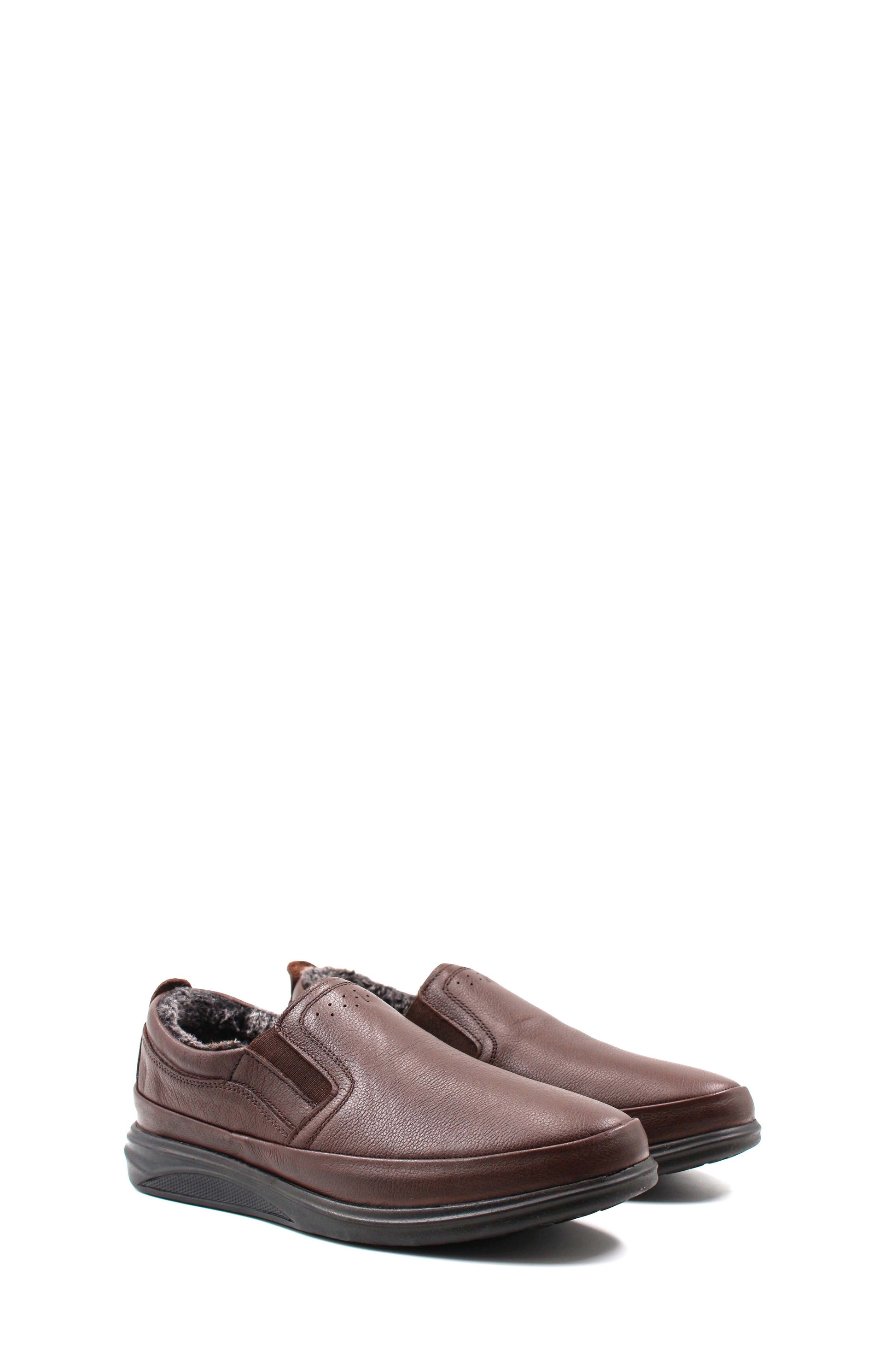 Men's Brown Fur-Lined Slip-On Shoes-Wessi