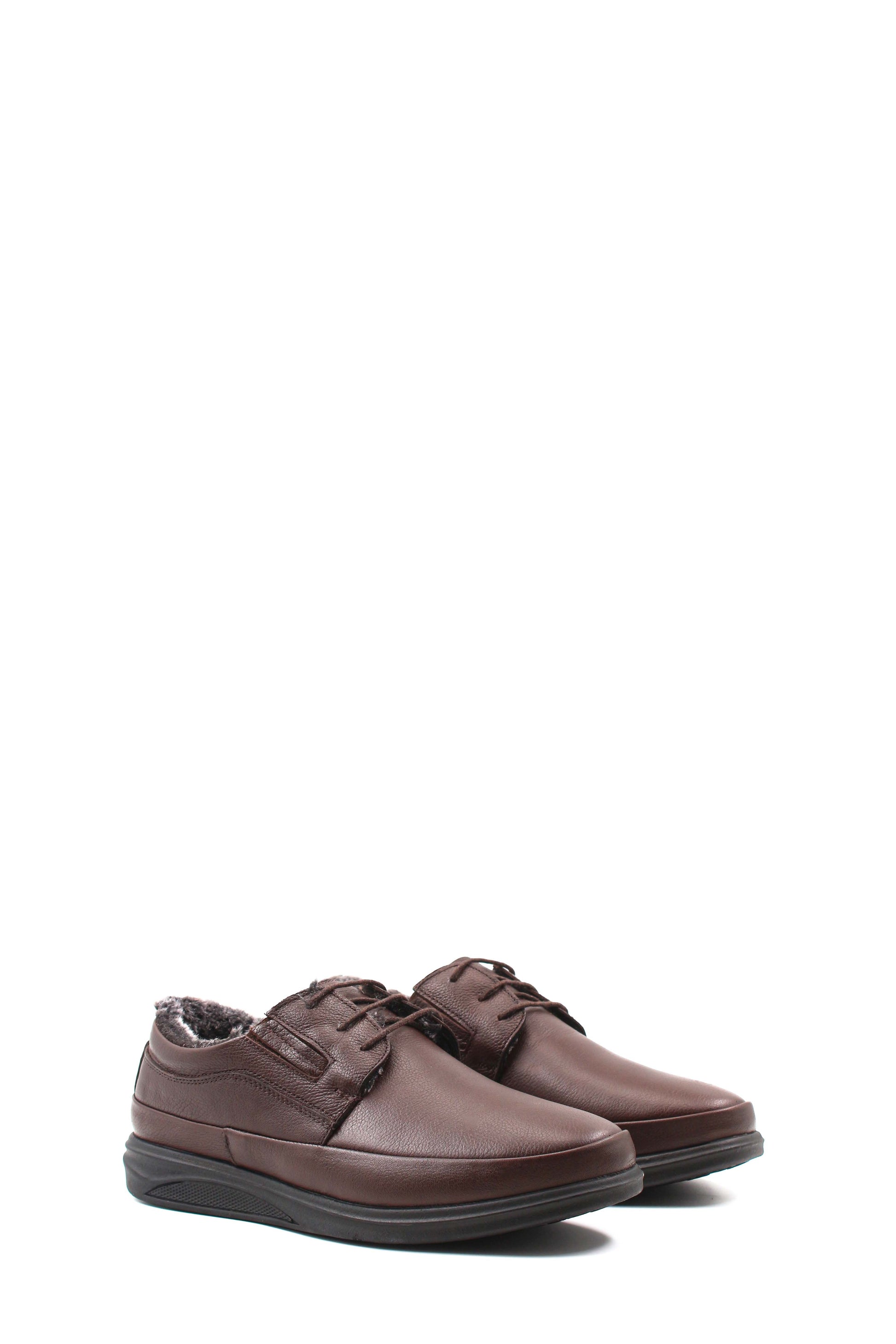 Men's Brown Leather Fleece-Lined Casual Shoes