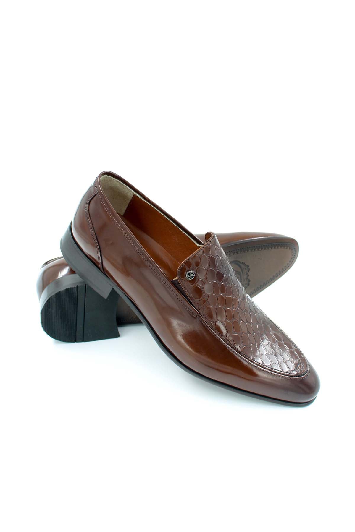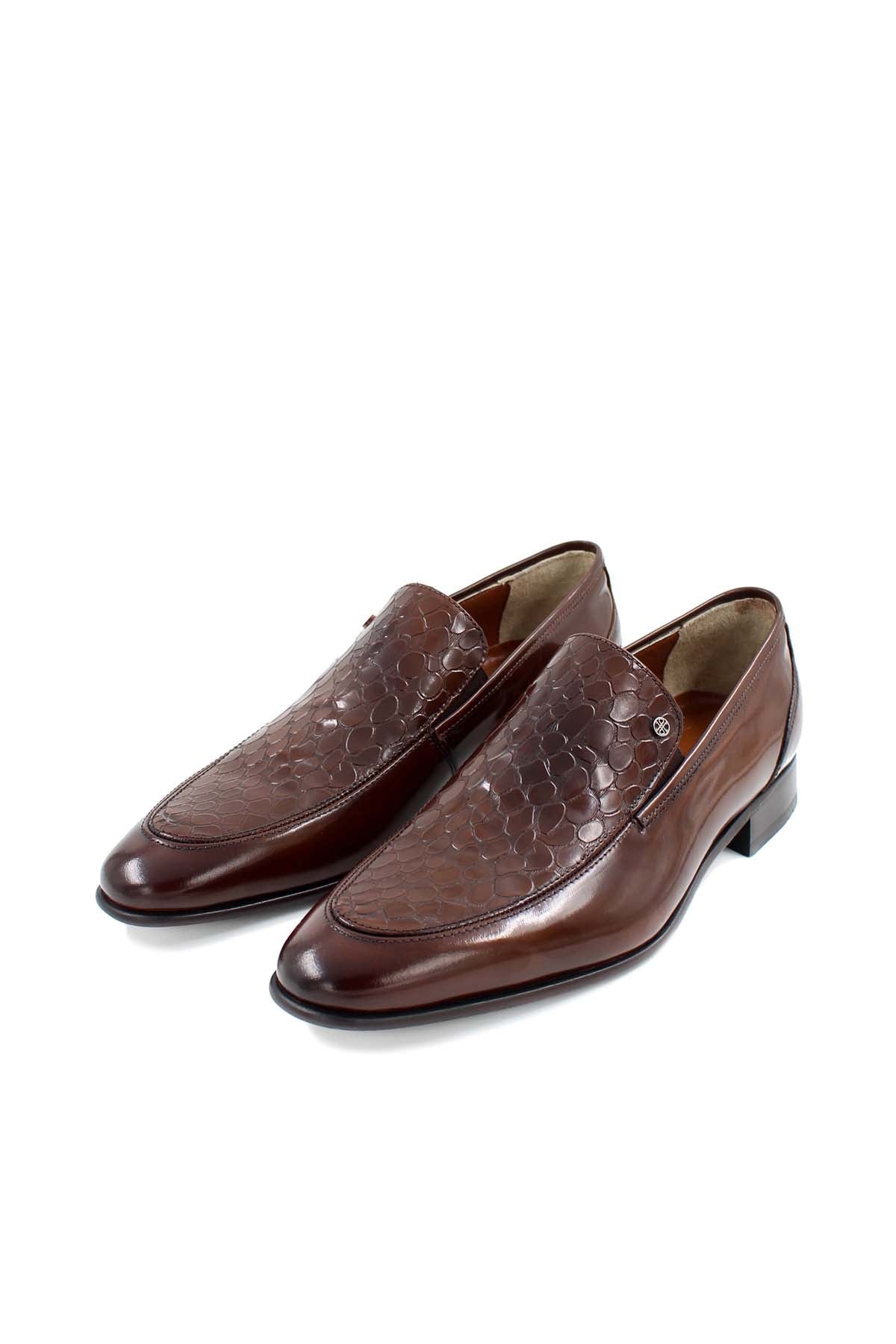 Men's Brown Leather Loafers with Embossed...
