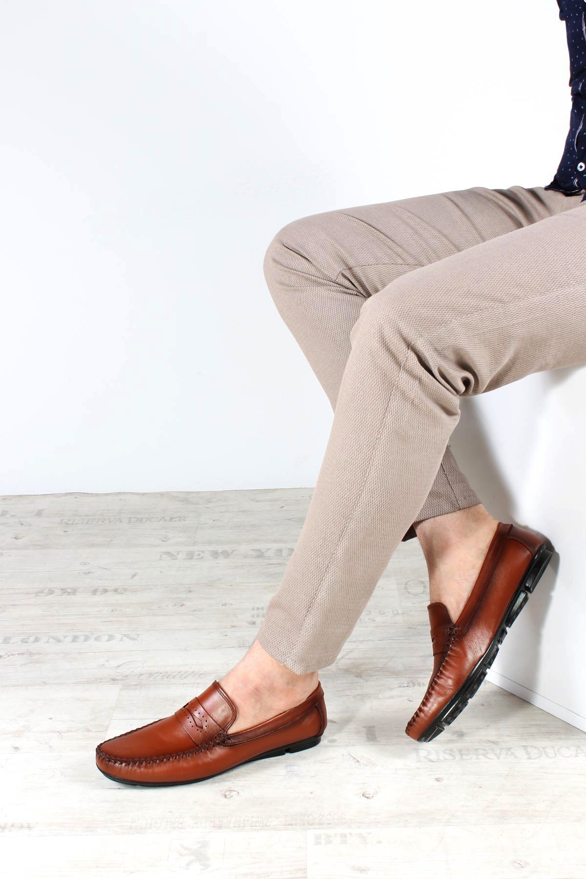 Men's Brown Leather Loafers with Hand-Stitched...