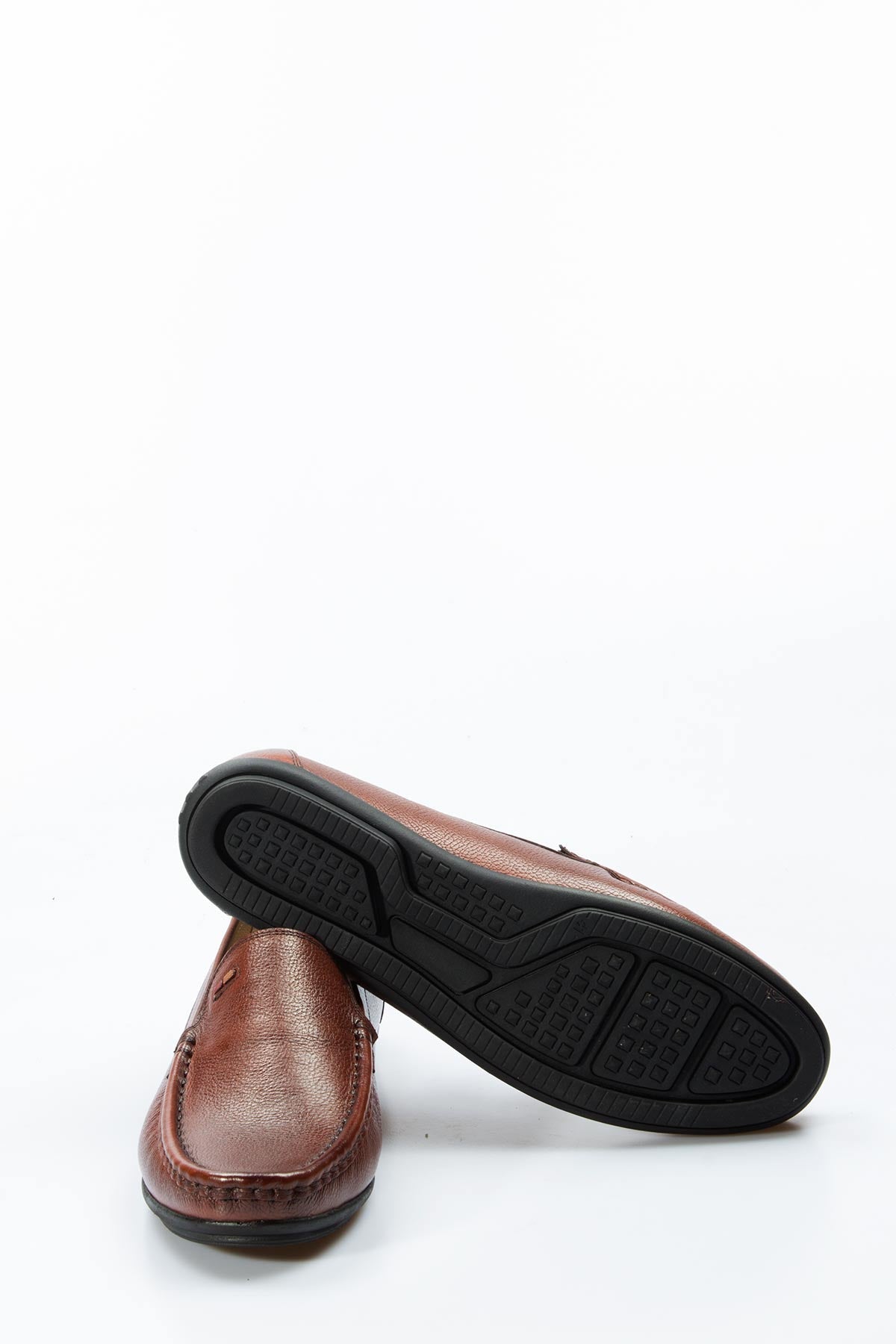 Men's Brown Leather Loafers with Subtle...