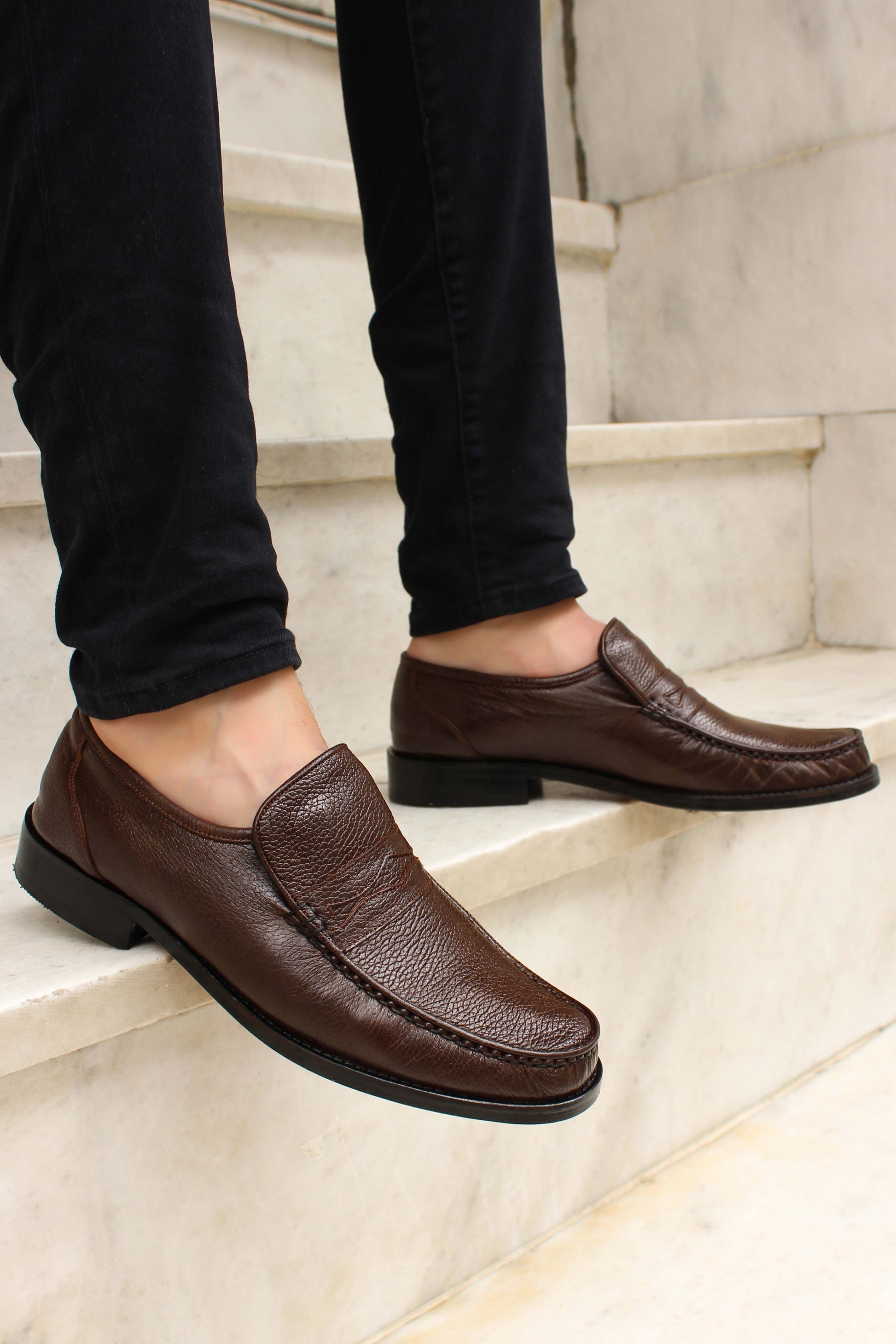 Men's Brown Leather Penny Loafers with...