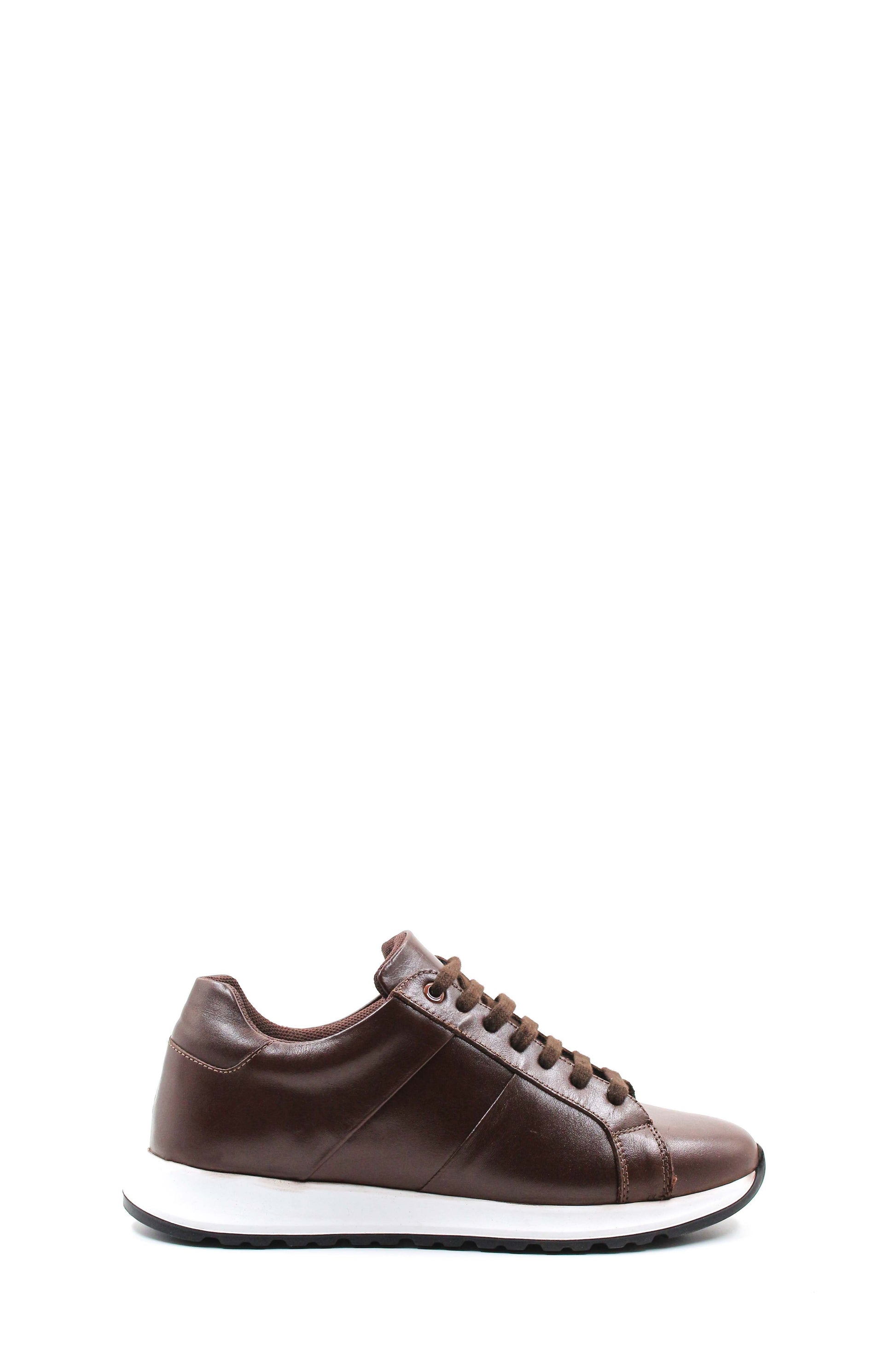 Men's Brown Leather Sneakers with Contrast...