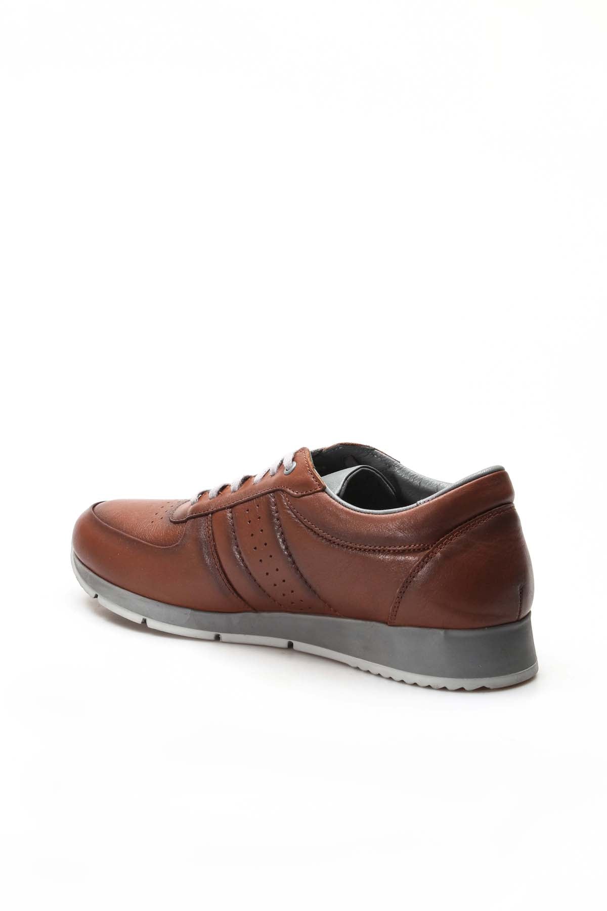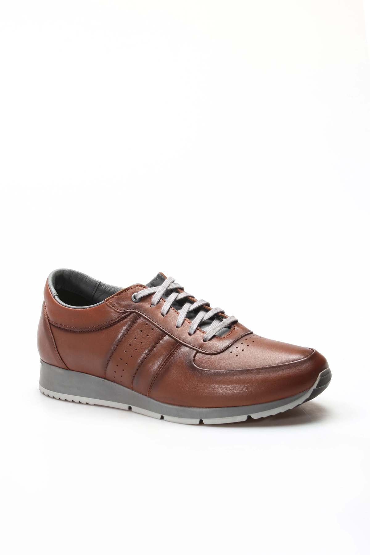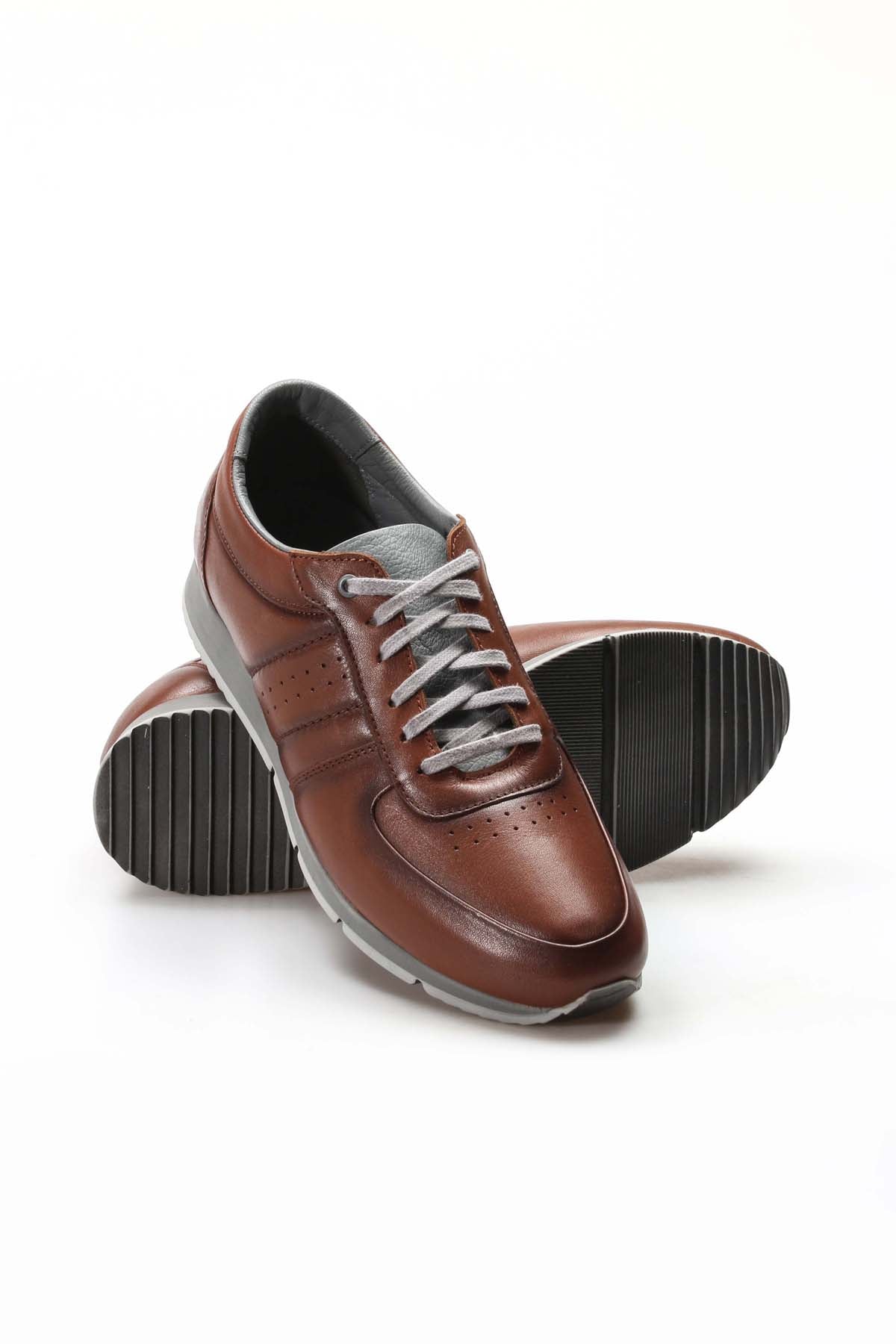Men's Brown Leather Sneakers with Gray...