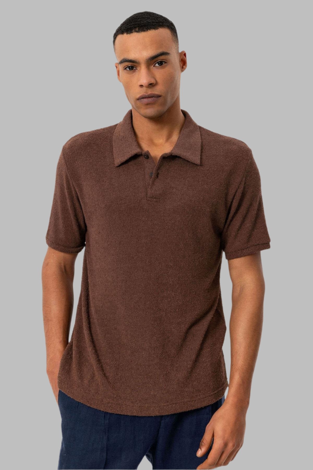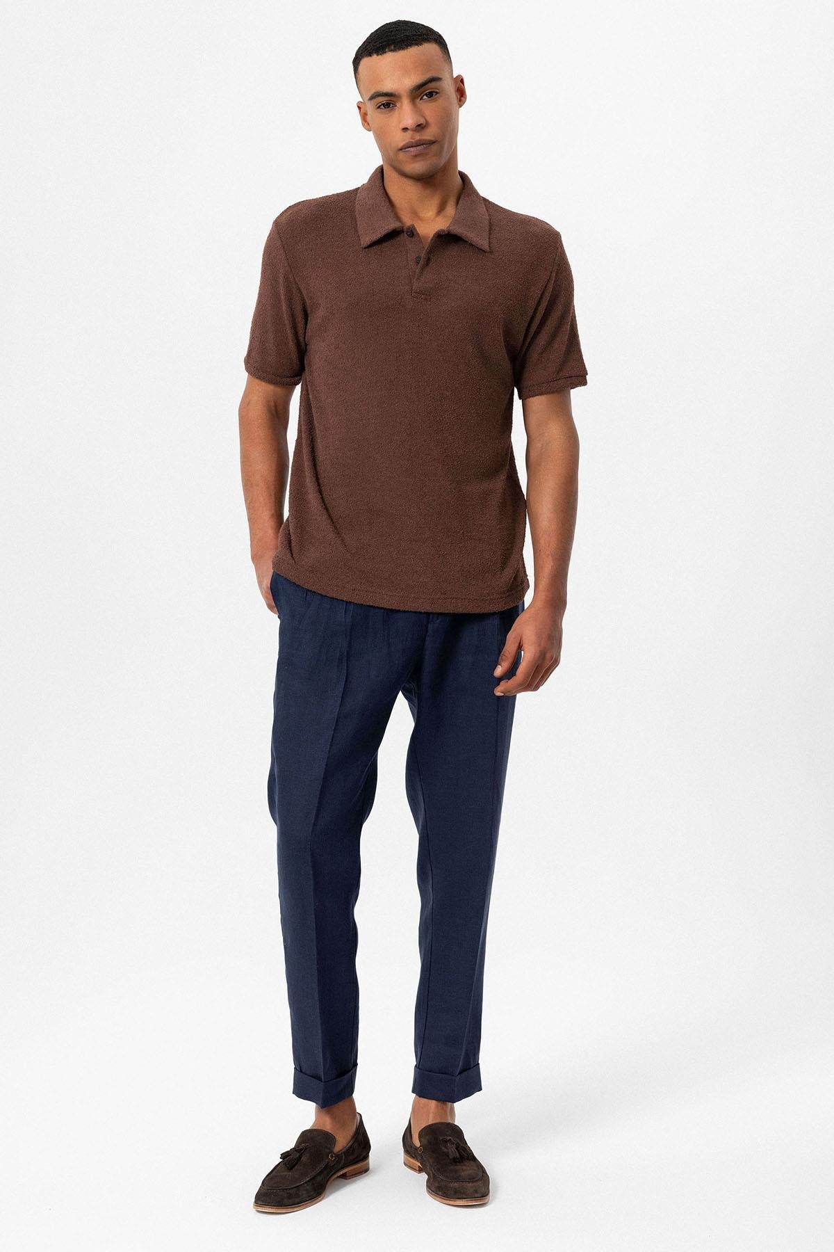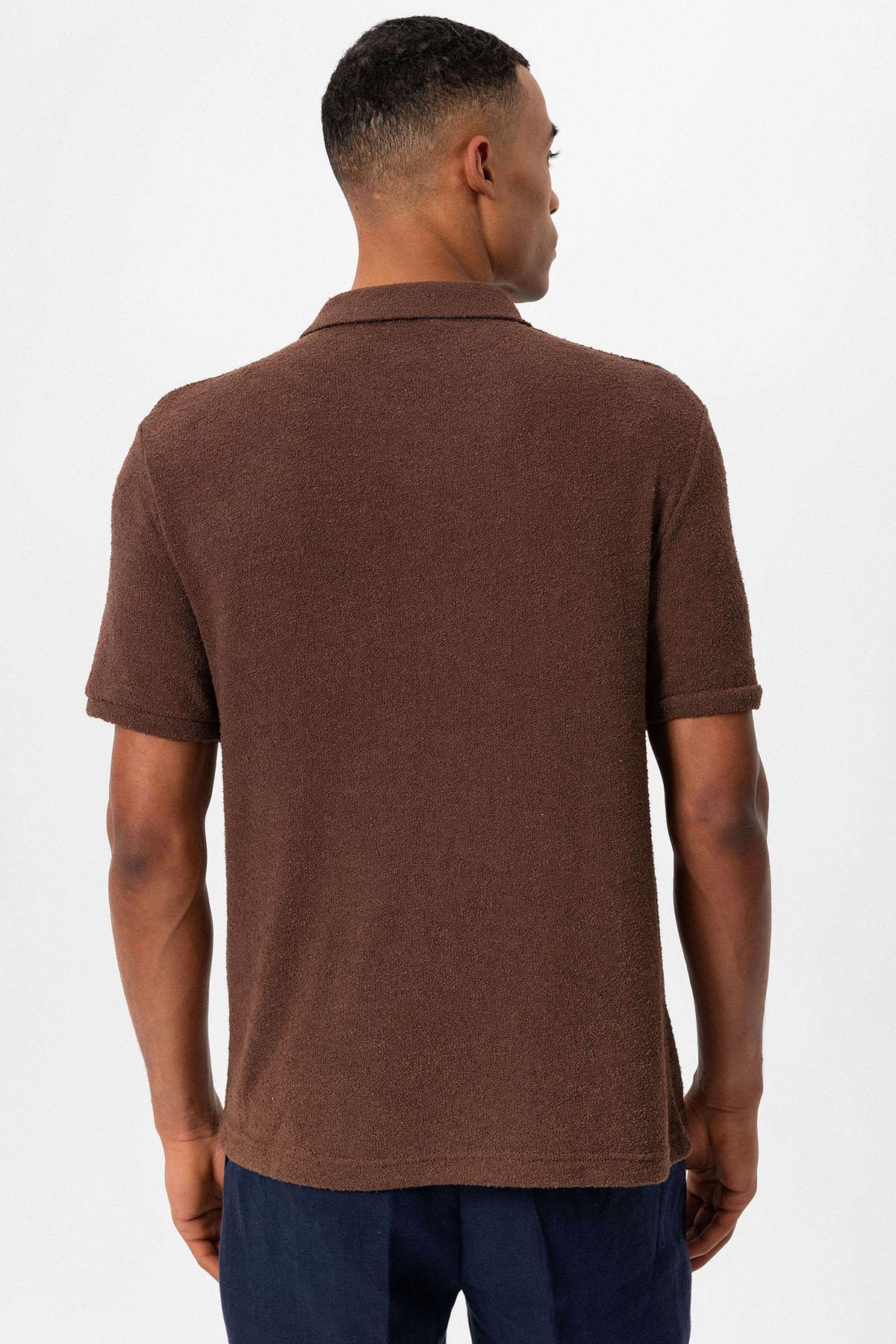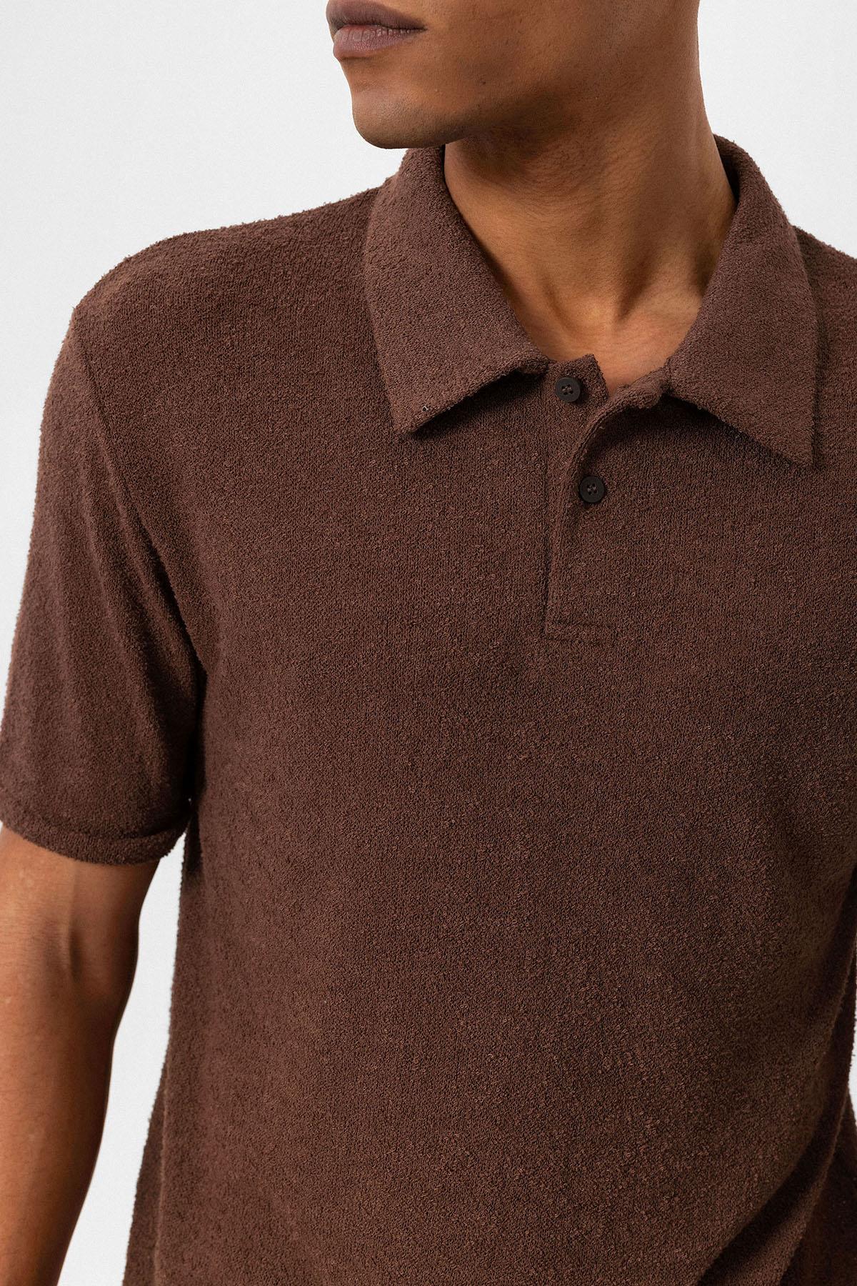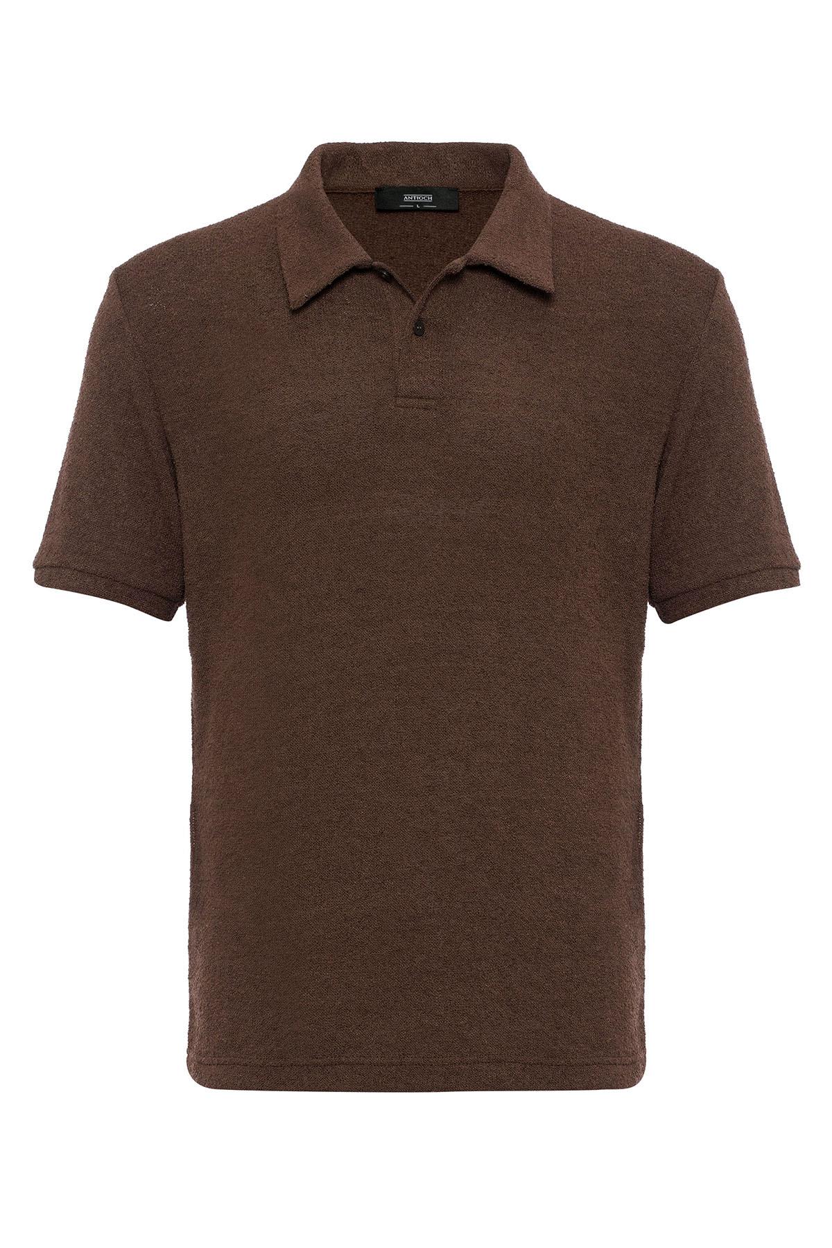 Men's Brown Polo Collar Knit T-Shirt