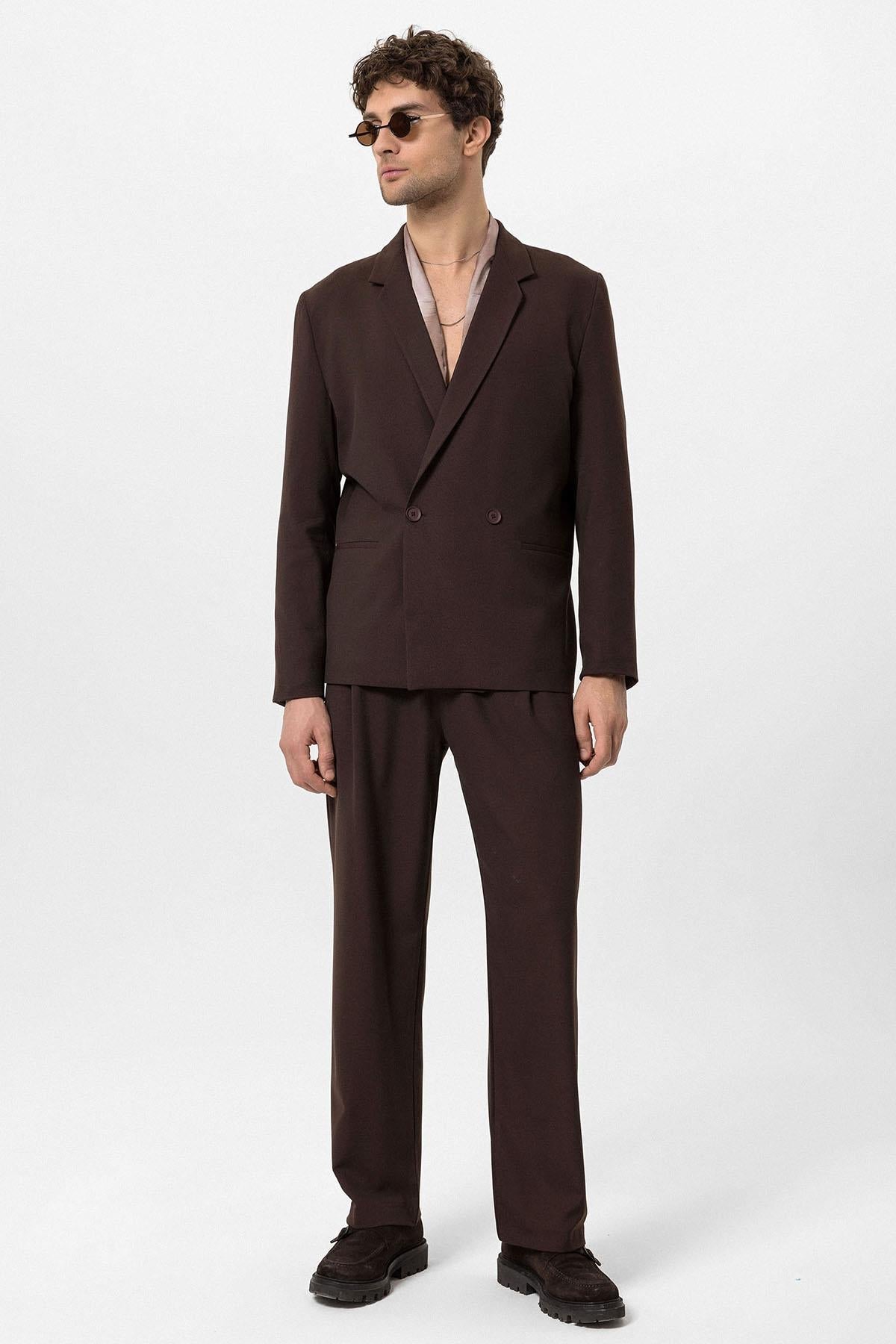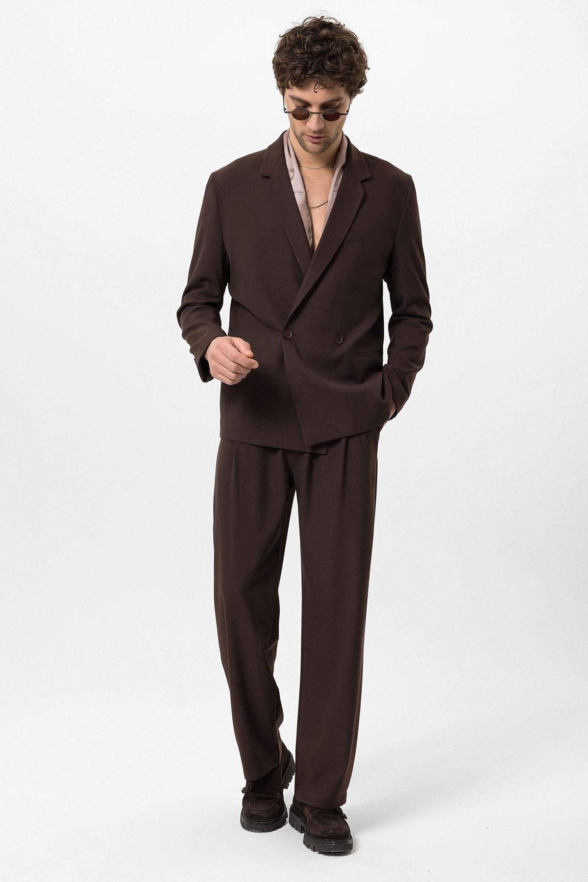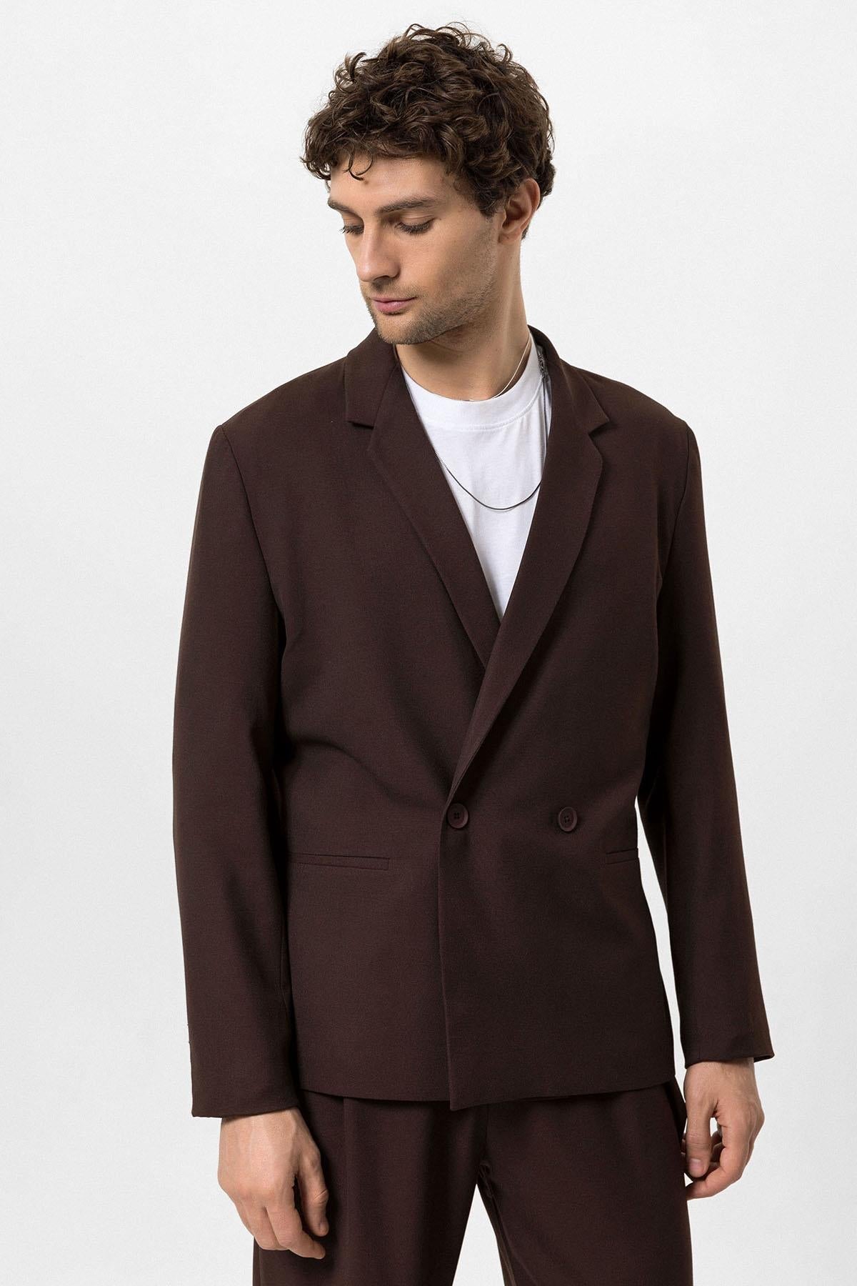 Men's Brown Single-Button Double-Breasted Blazer