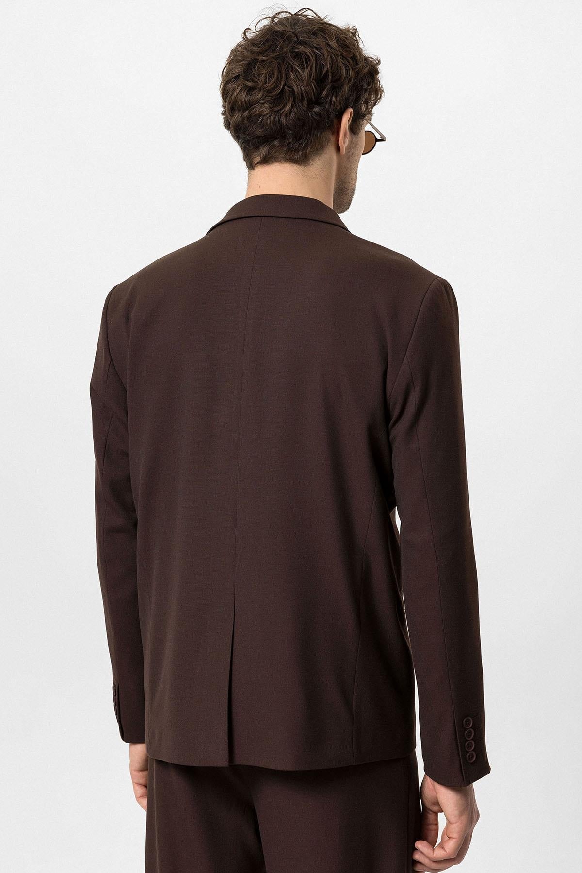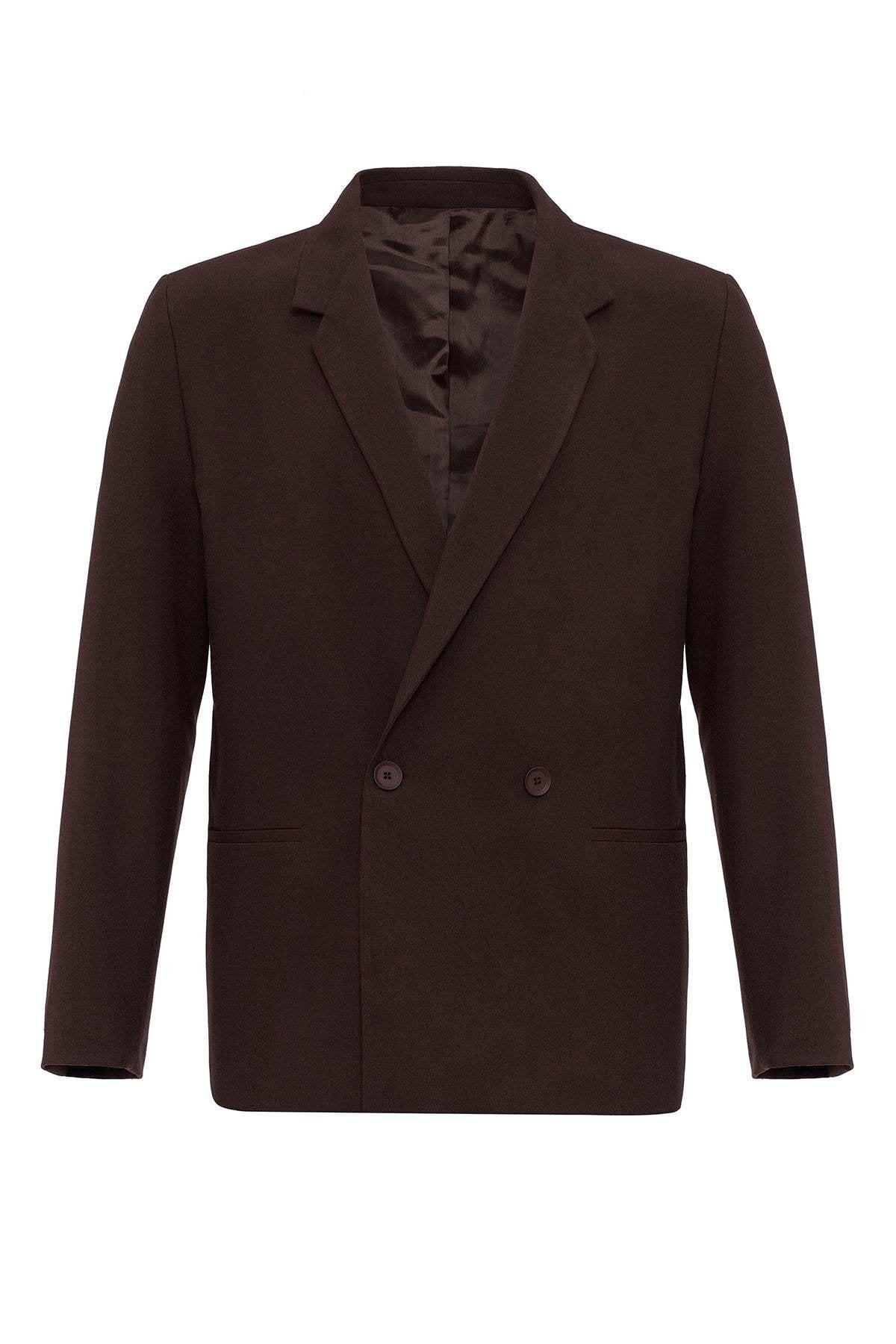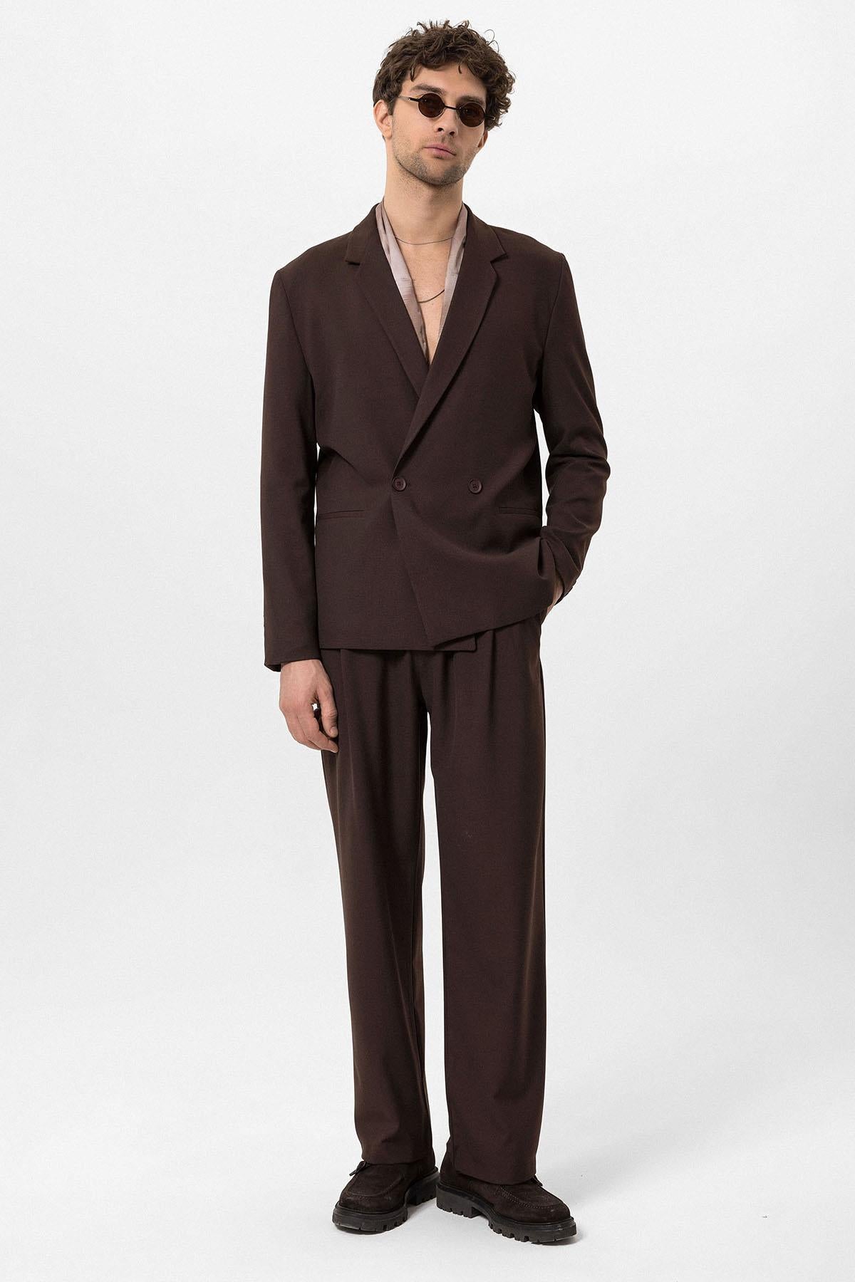 Men's Brown Single-Button Double-Breasted Blazer
