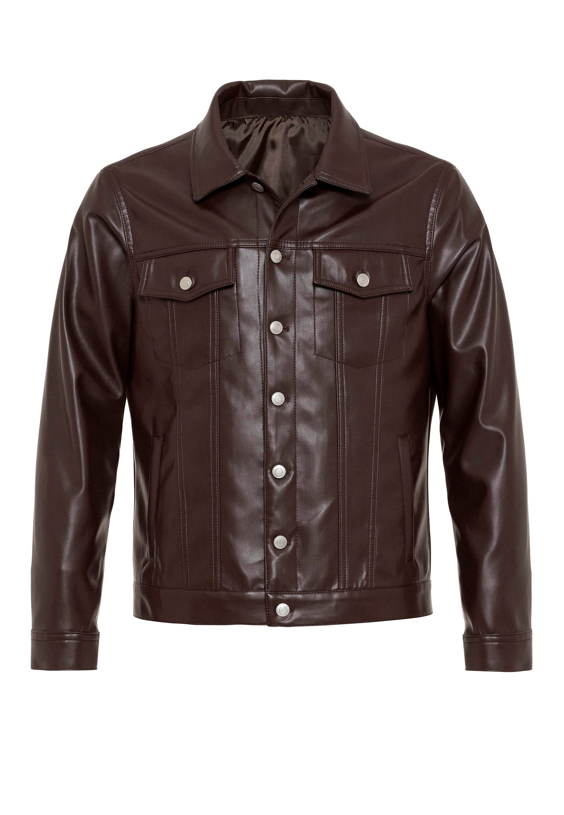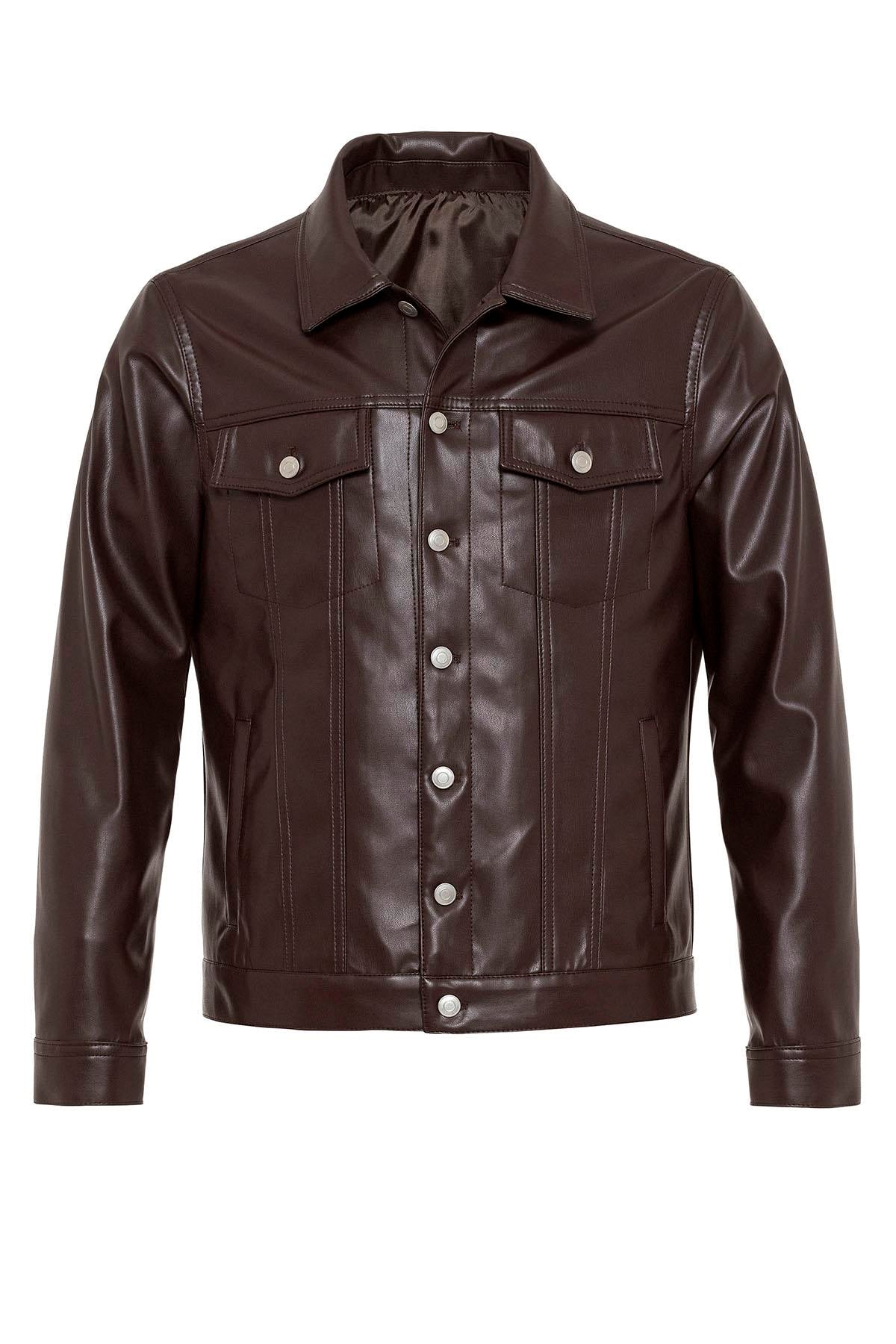 Men's Brown Slim Fit Buttoned Leather...