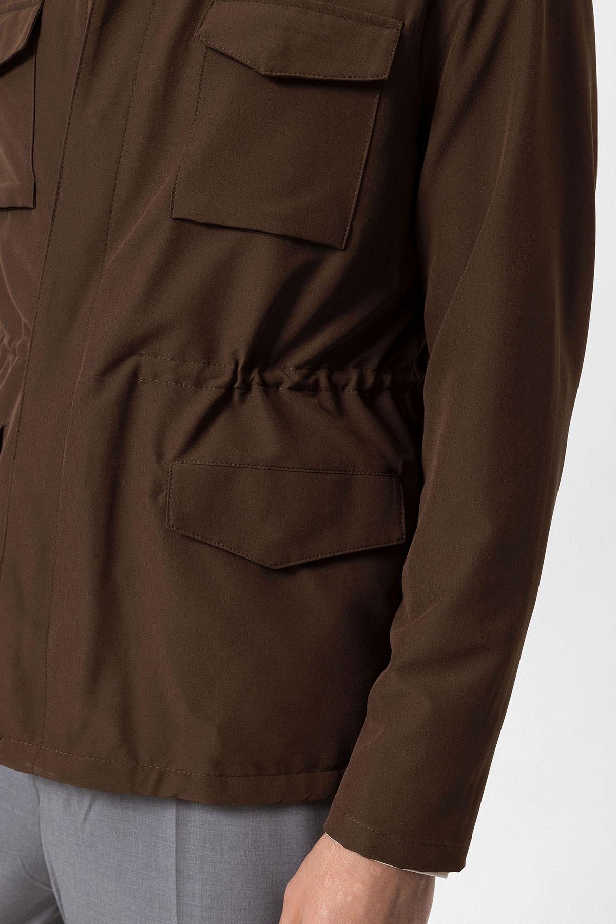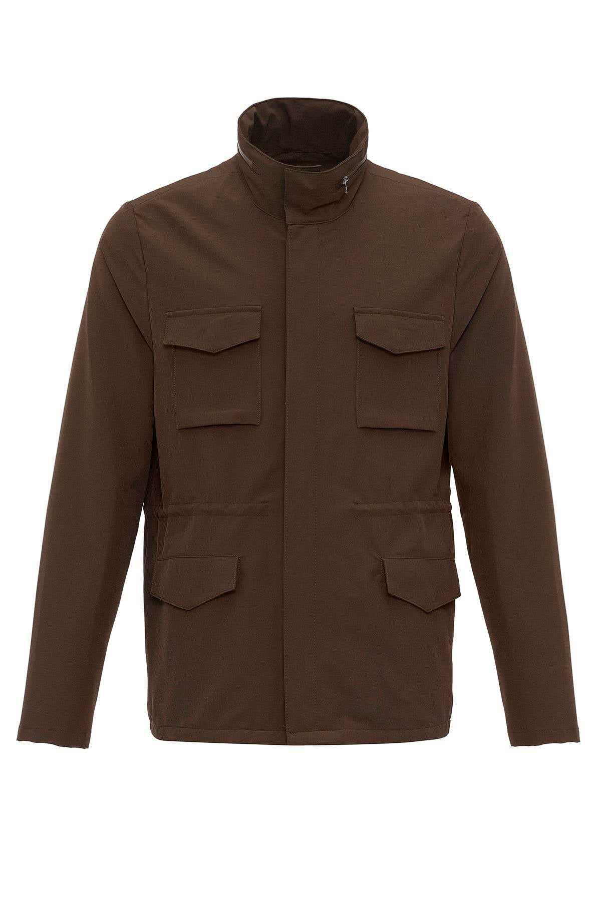 Men's Brown Stand Collar Safari Jacket